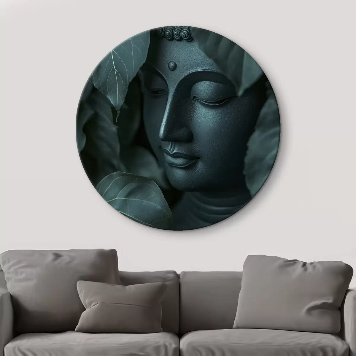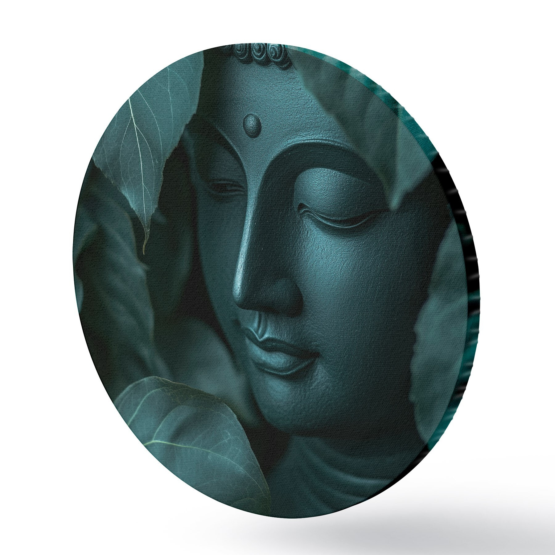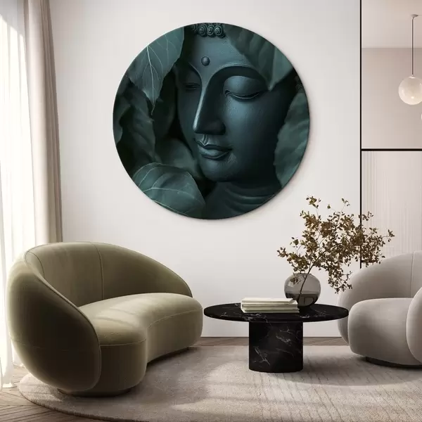 Quadri rotondi Buddha tra le foglie verdi, buddismo, tropicale, realismo r44004