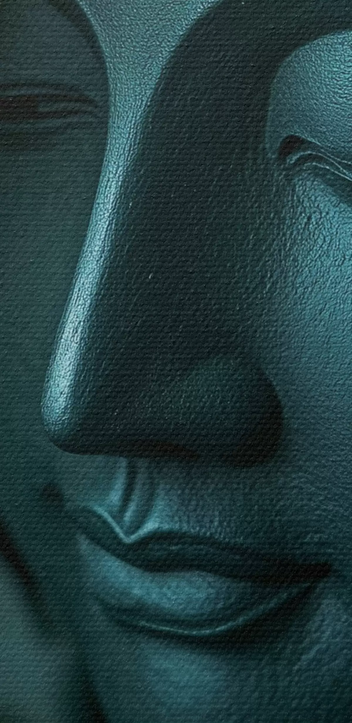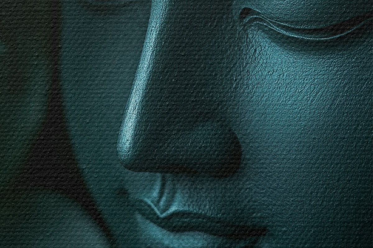 Immagine Buddha tra le foglie verdi, buddismo, tropicale, realismo Nr r44004