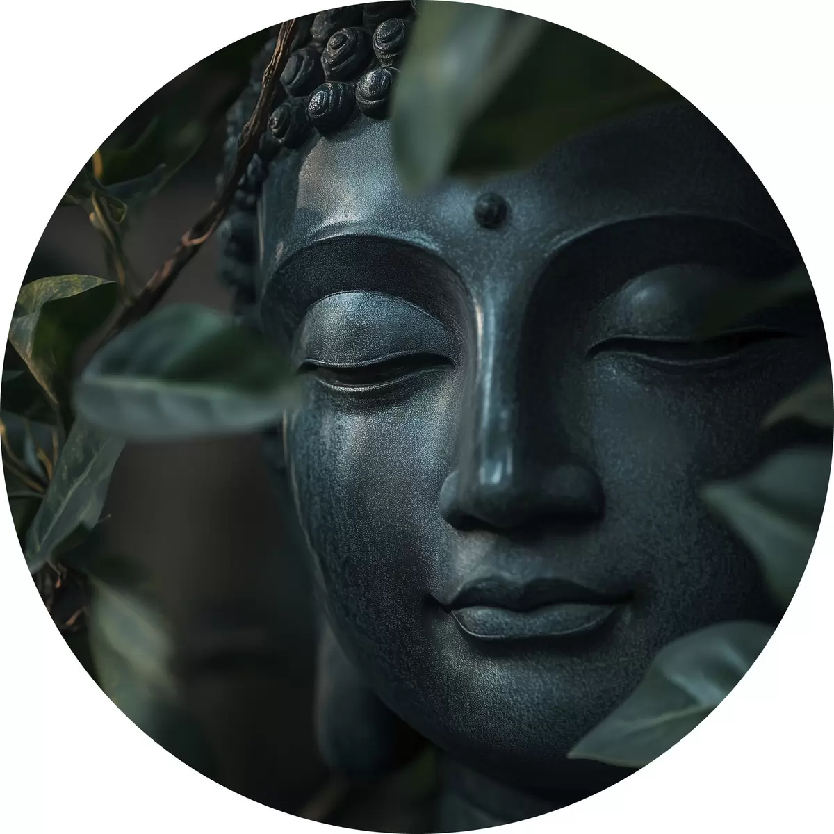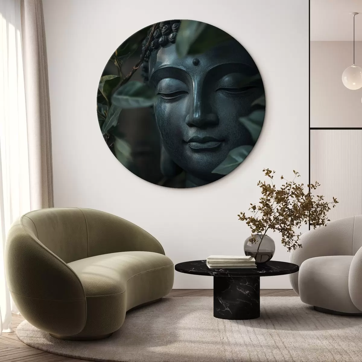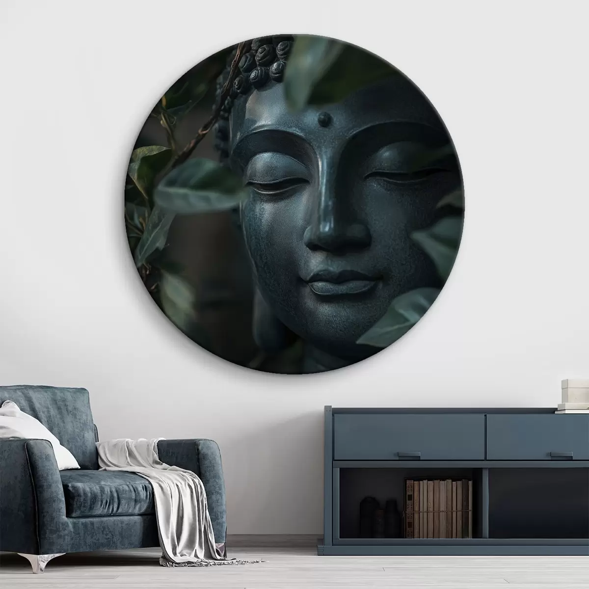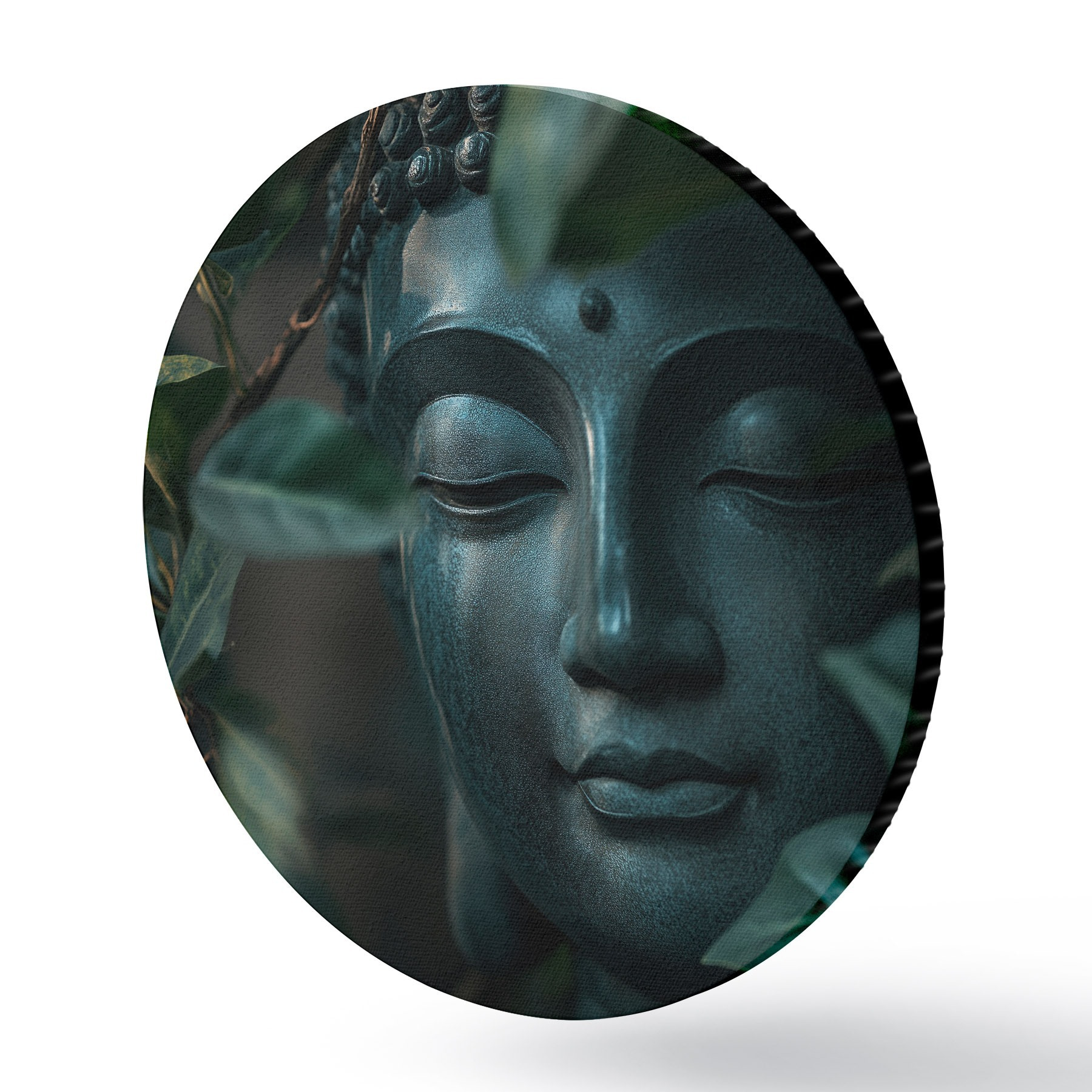 Quadri rotondi Buddha verde con foglie tropicali, realismo r44005