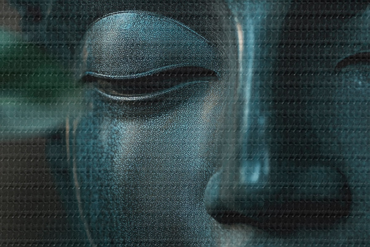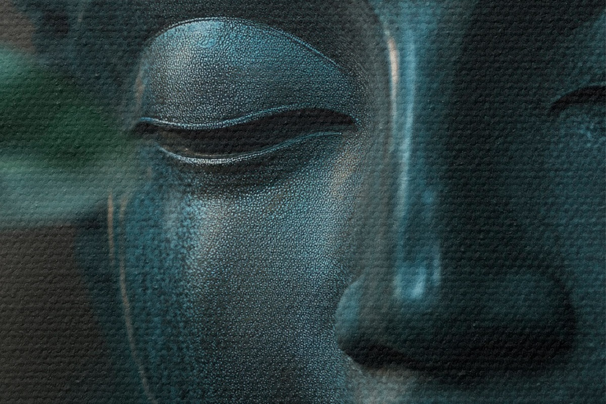 Immagine Buddha verde con foglie tropicali, realismo Nr r44005