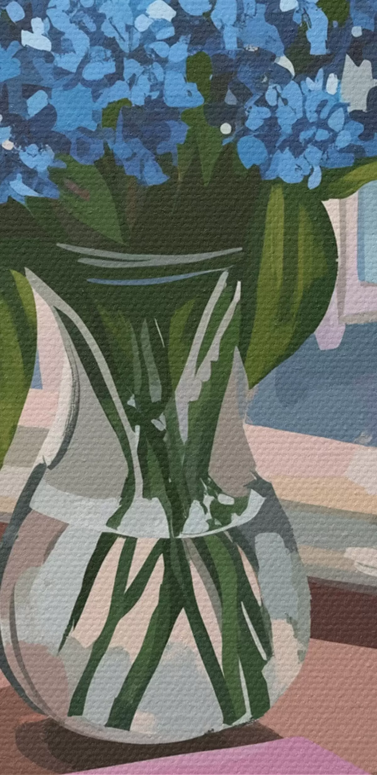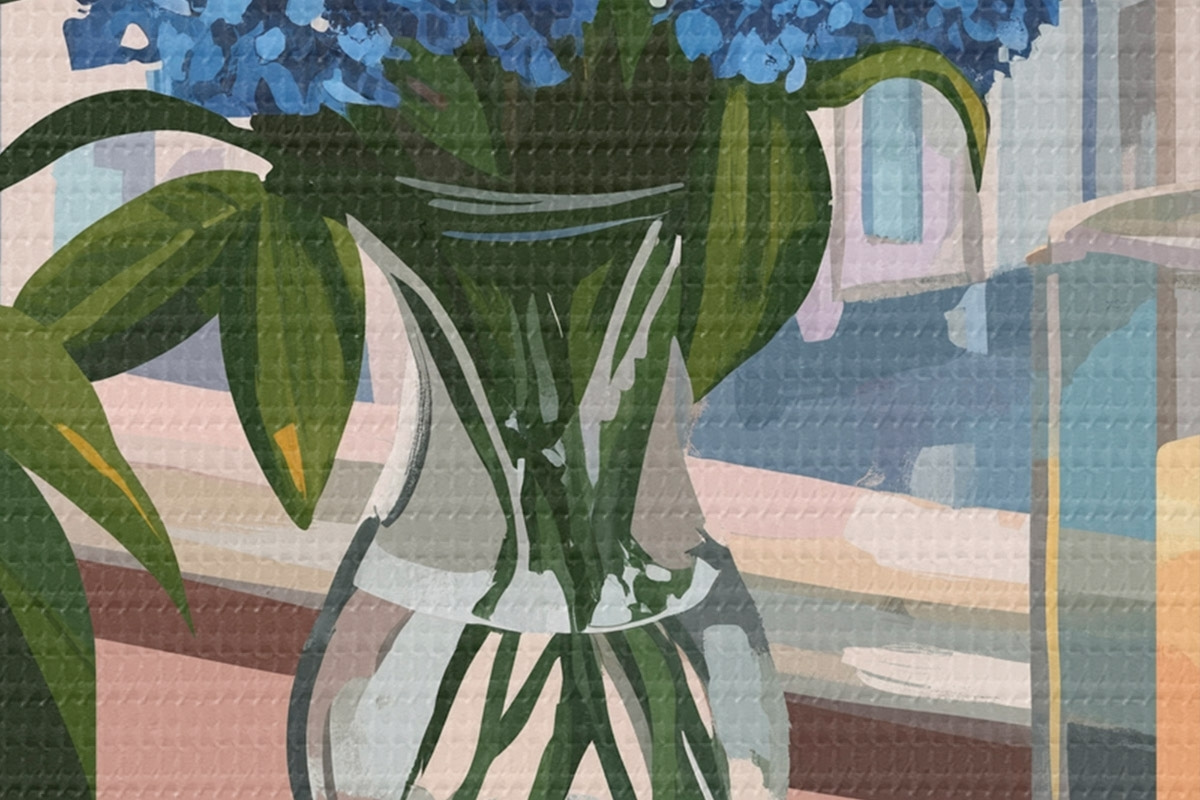 Immagine Ortensie nel vaso, vista dalla finestra, candela, casa accogliente Nr r44009