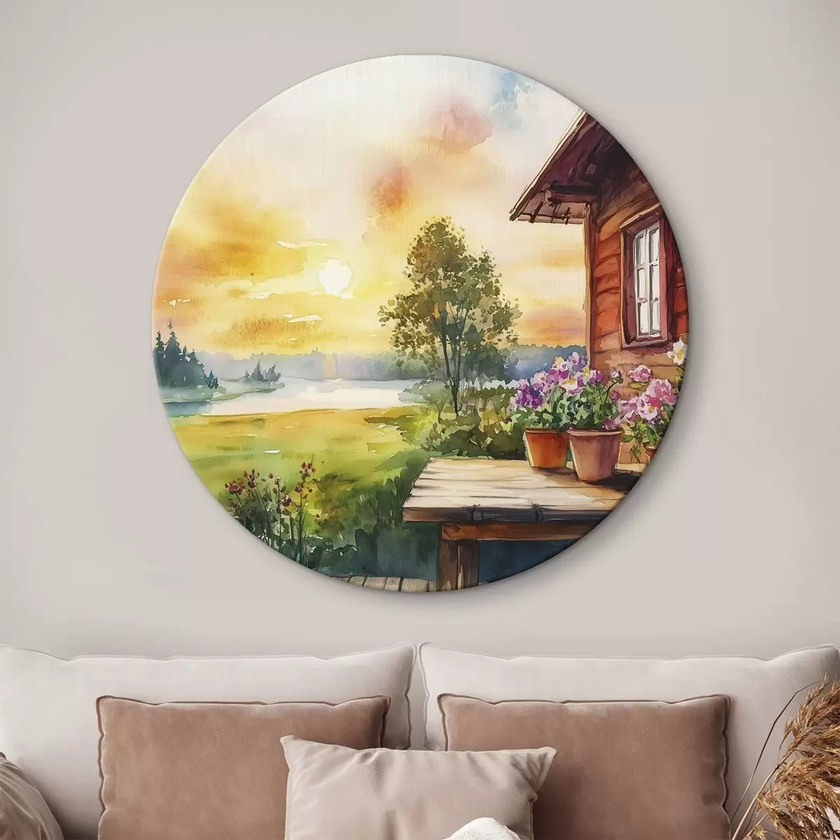 Quadri rotondi Colori del tramonto, fattoria, stile acquerello, rustico, fiori estivi r44017