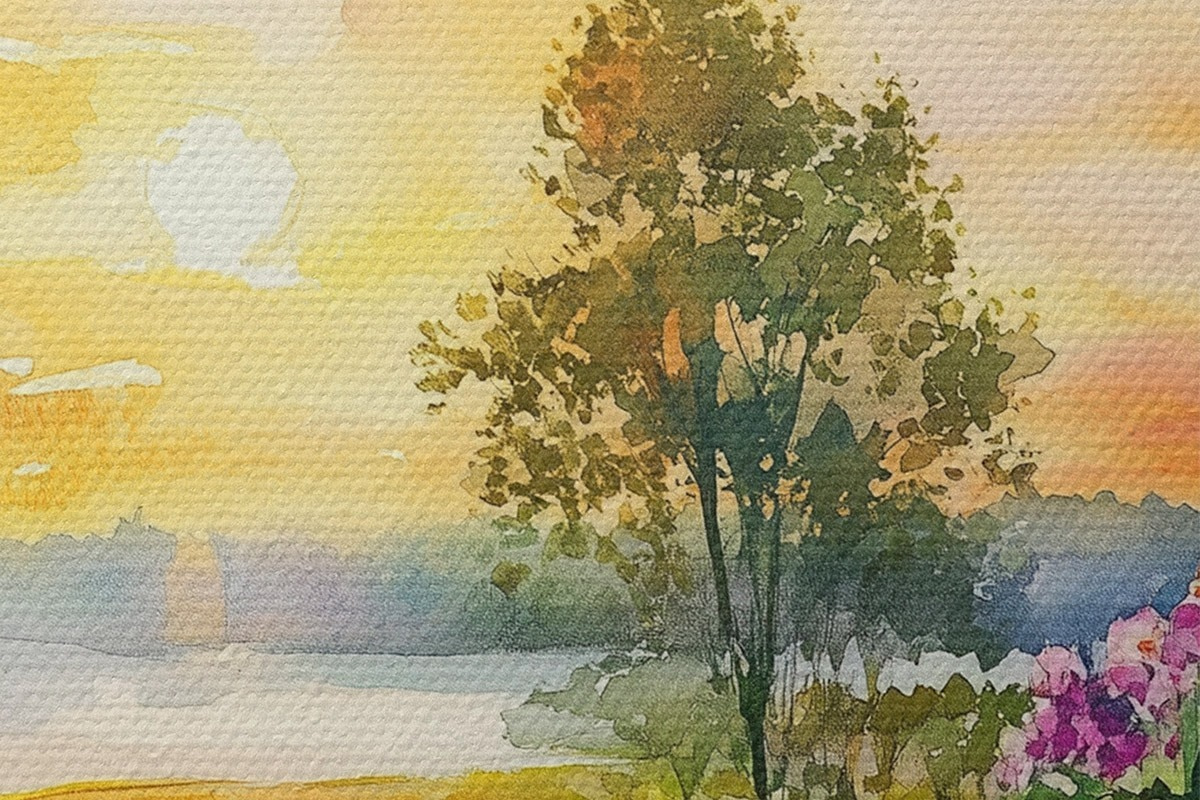 Immagine Colori del tramonto, fattoria, stile acquerello, rustico, fiori estivi Nr r44017