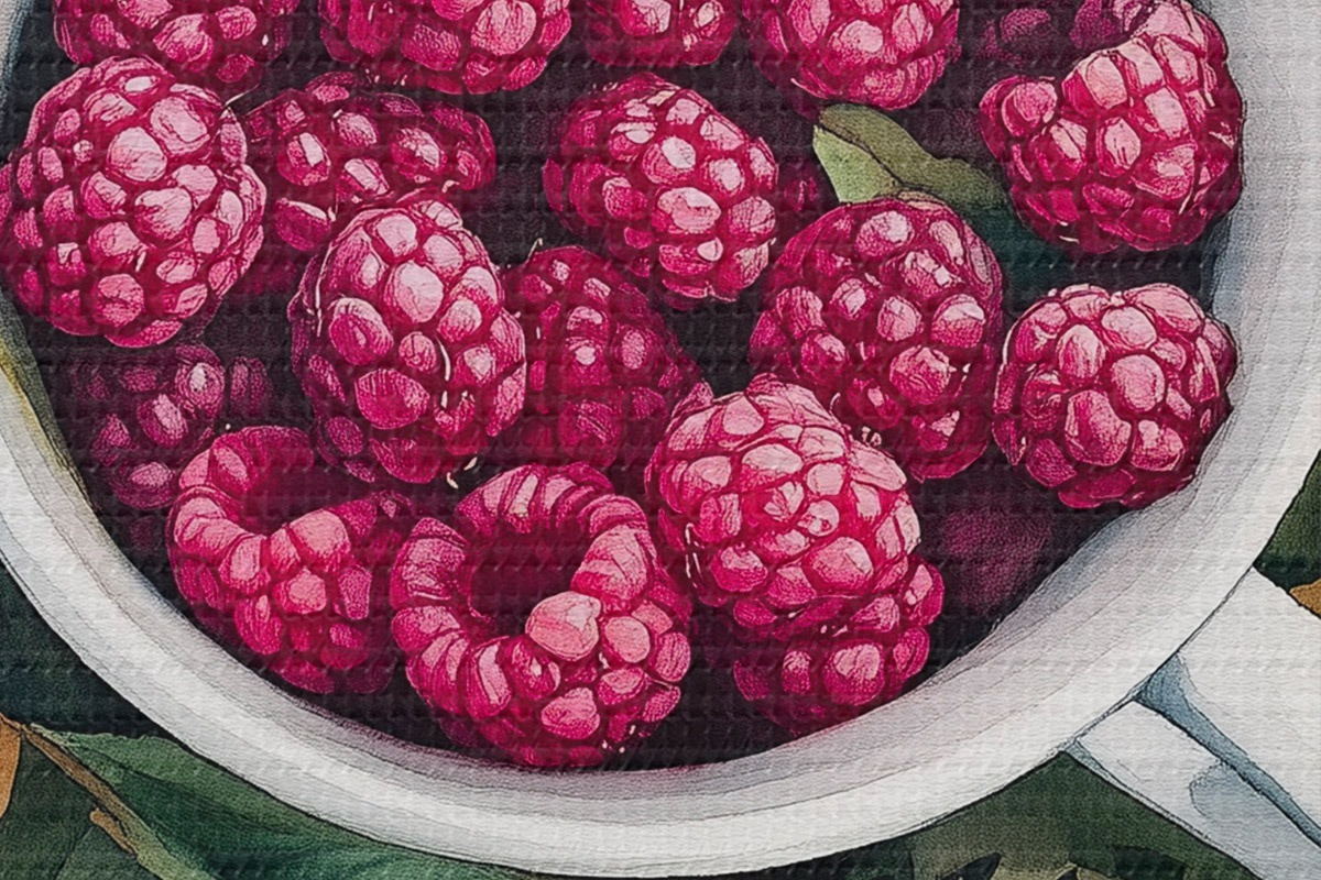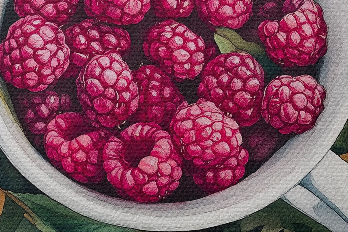 Immagine Lamponi succosi nel bosco, rustico, foglie, stile acquerello Nr r44023