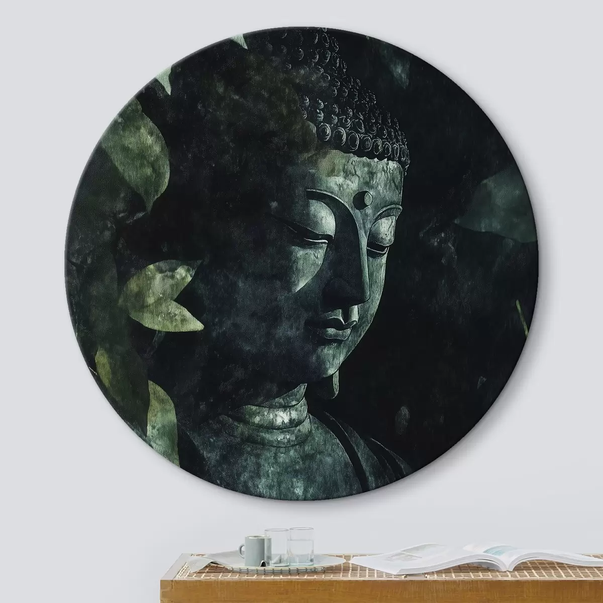 Quadri rotondi Buddha meditativo tra le foglie verdi, spirituale r44029