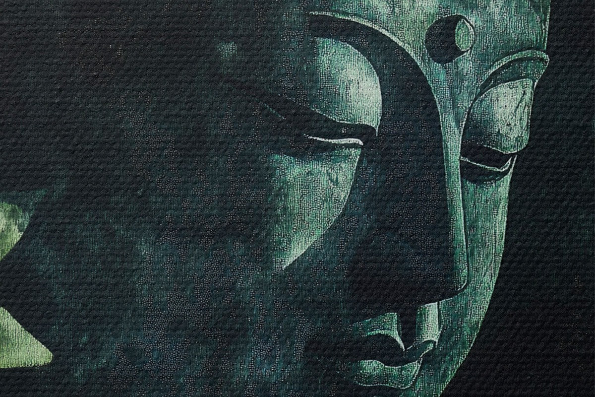 Immagine Buddha meditativo tra le foglie verdi, spirituale Nr r44029