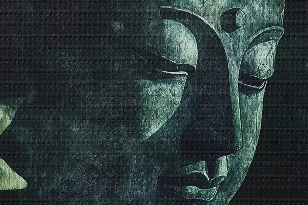 Immagine Buddha meditativo tra le foglie verdi, spirituale Nr r44029