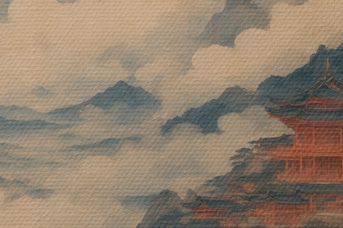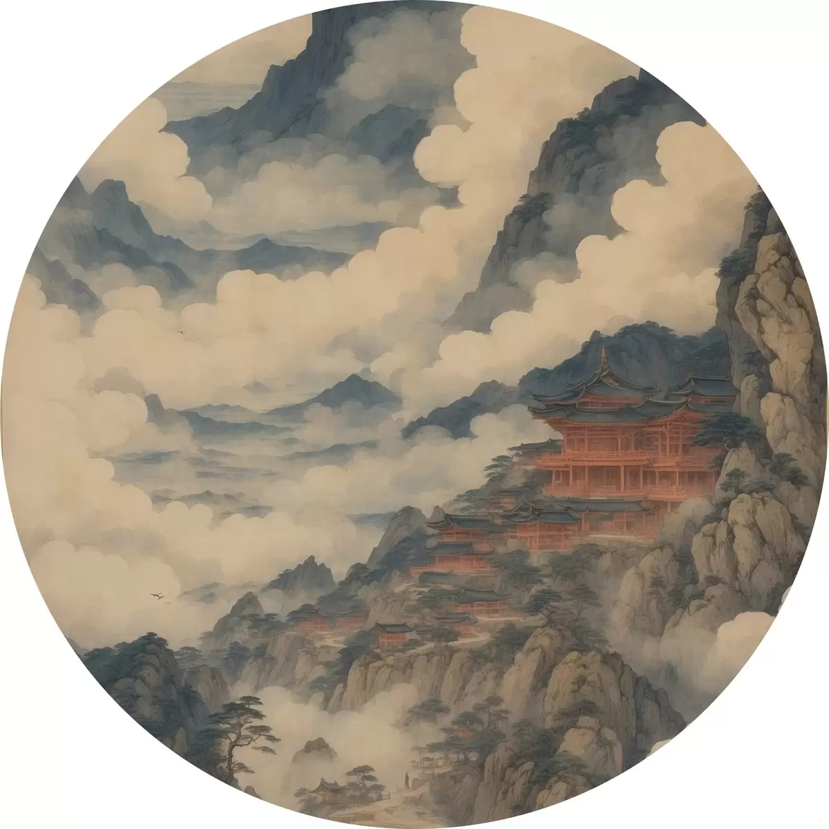 Quadri rotondi Palazzo cinese in montagna r44058