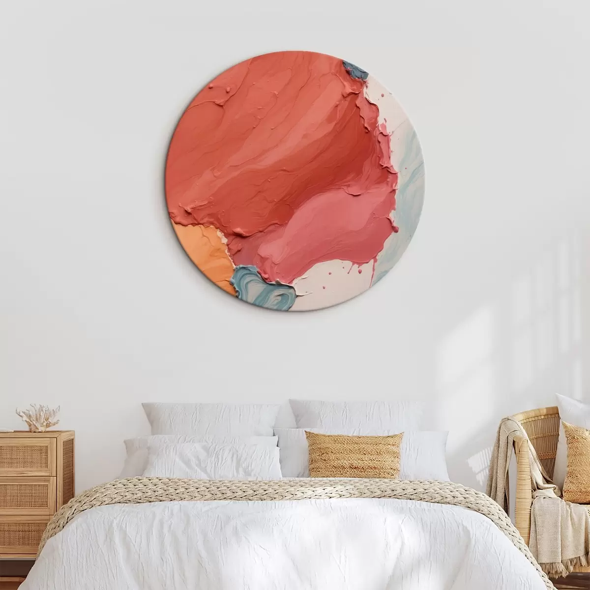 Quadri rotondi Pittura ad olio astratta con colori rossi, gialli e blu r44068