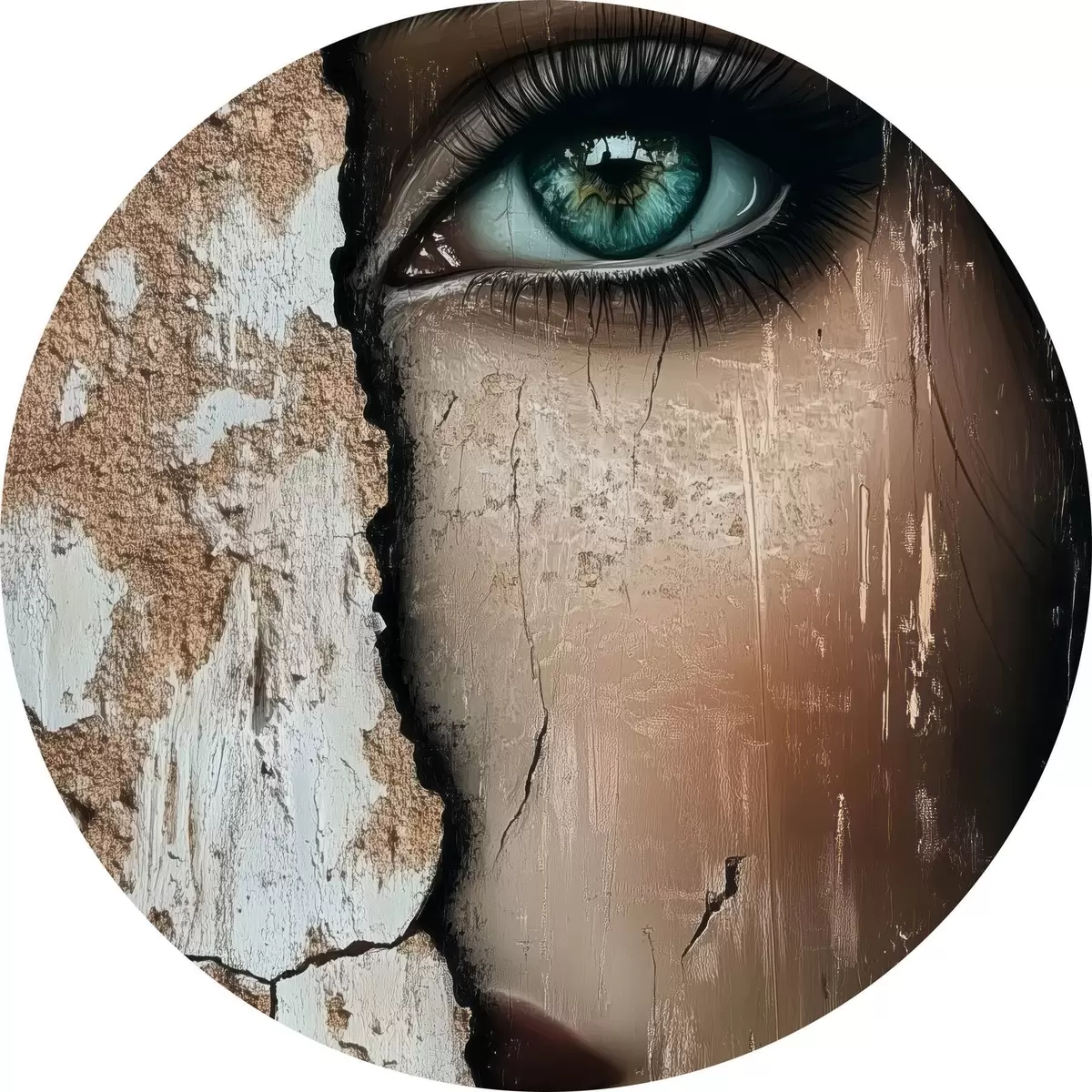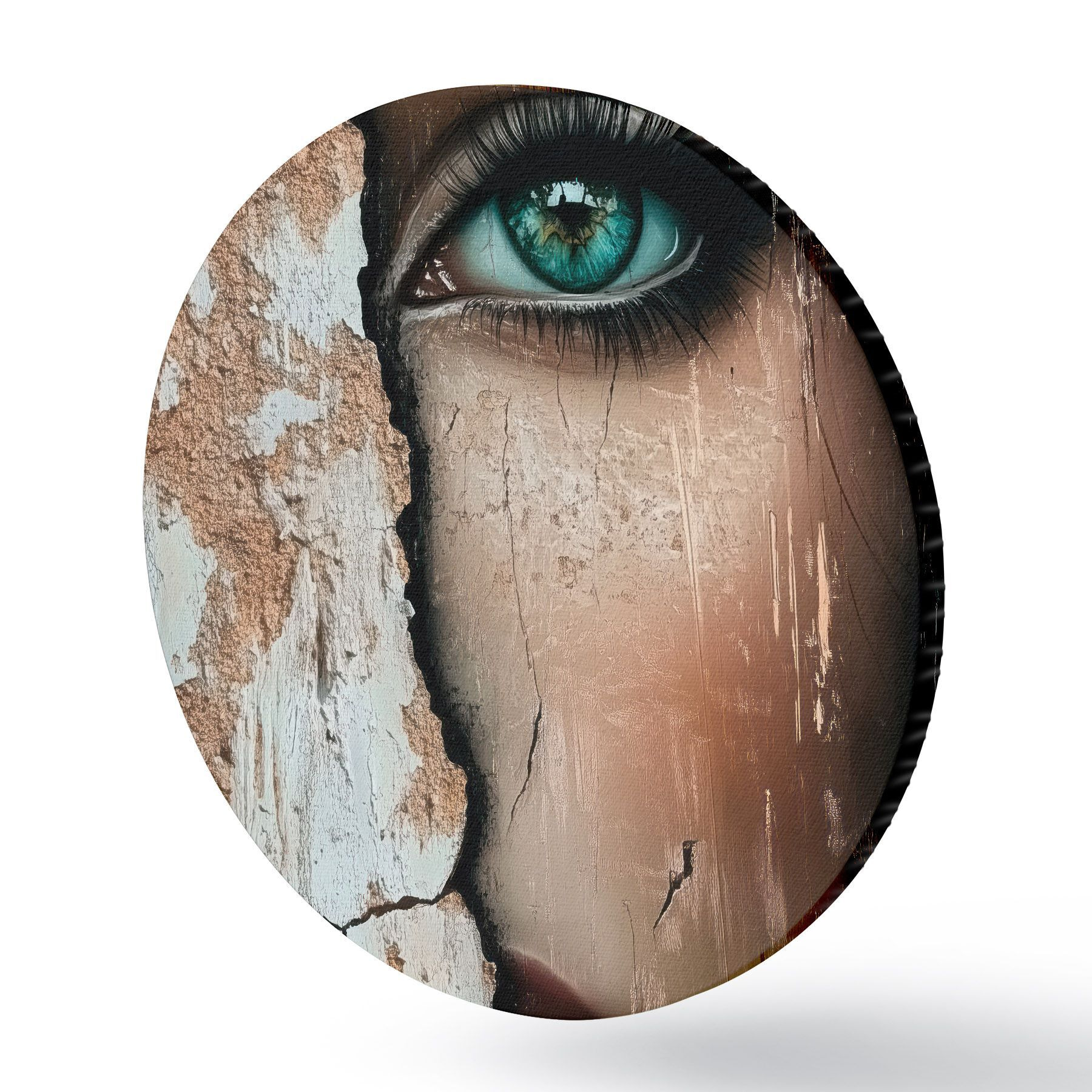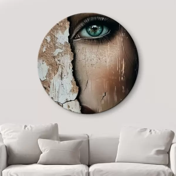 Quadri rotondi Volto di ragazza dietro un vecchio muro r44069