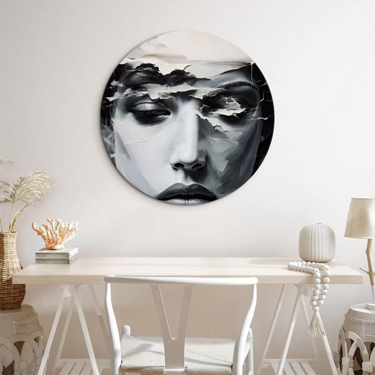 Quadri rotondi Volto femminile astratto in stile pittura acrilica r44070