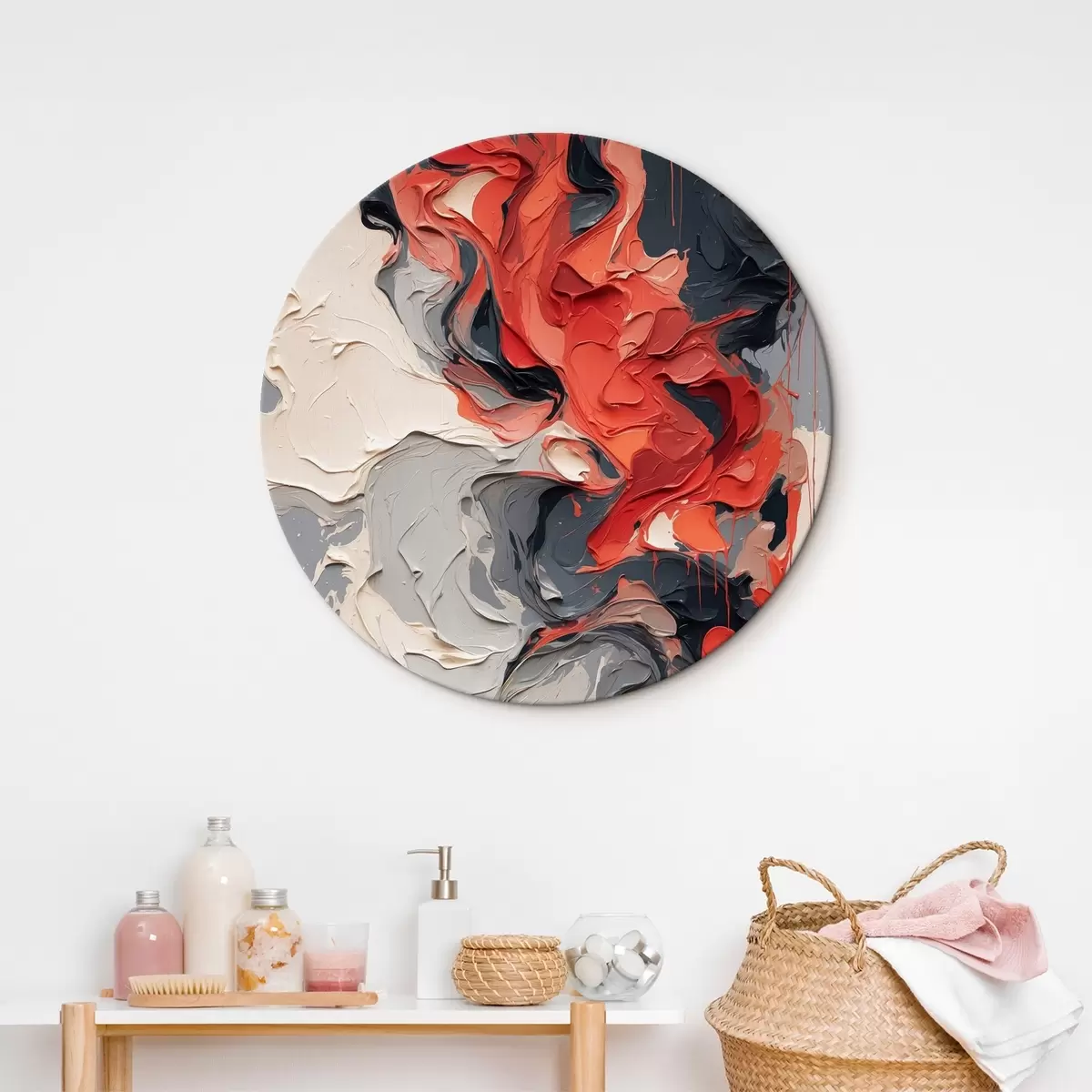 Quadri rotondi Pittura ad olio astratta con colori rosso, nero e grigio r44079