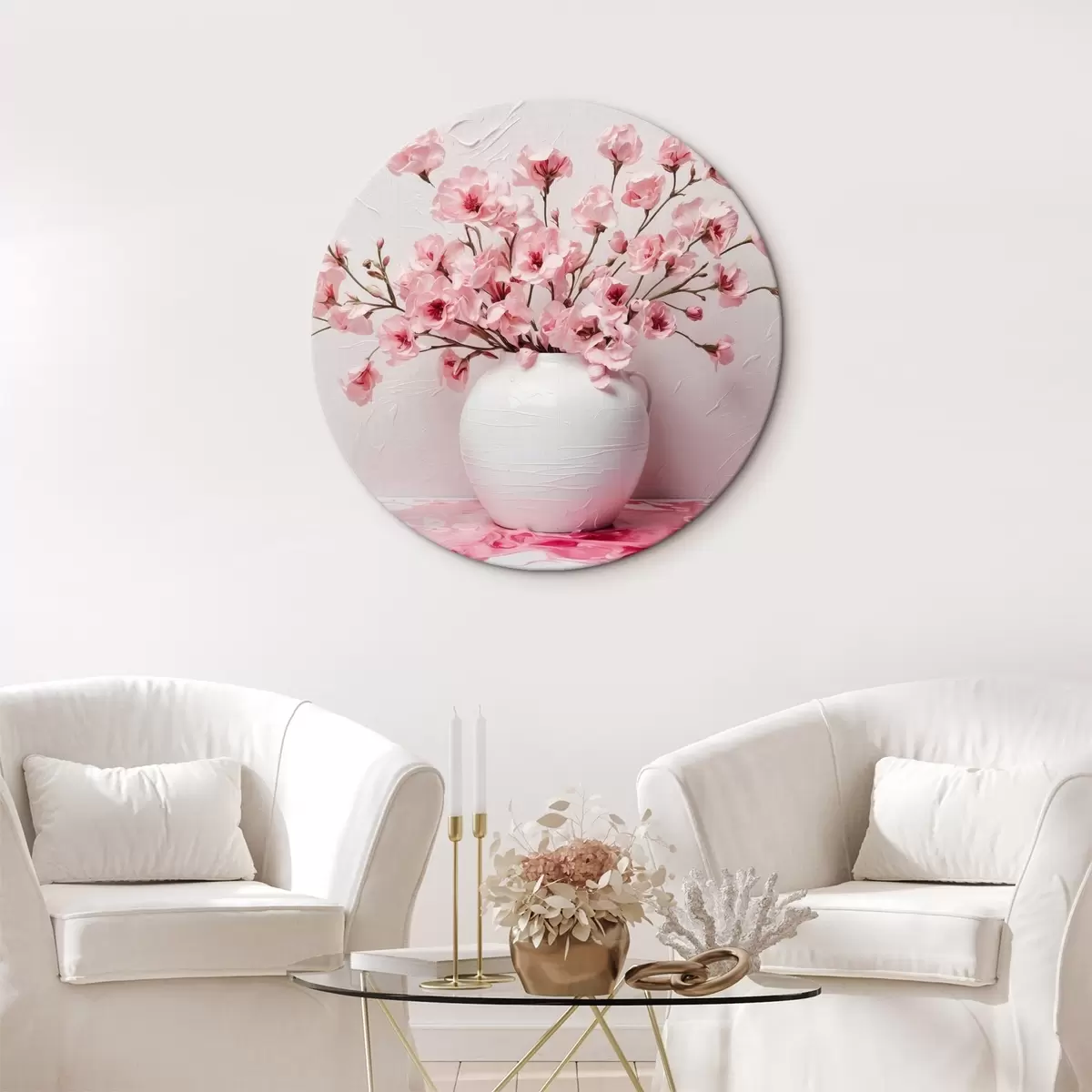 Quadri rotondi Fiori rosa in vaso grande bianco r44081