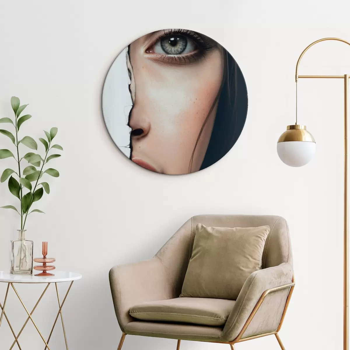Quadri rotondi Volto di ragazza dietro un muro bianco r44083