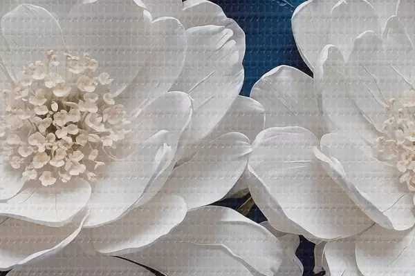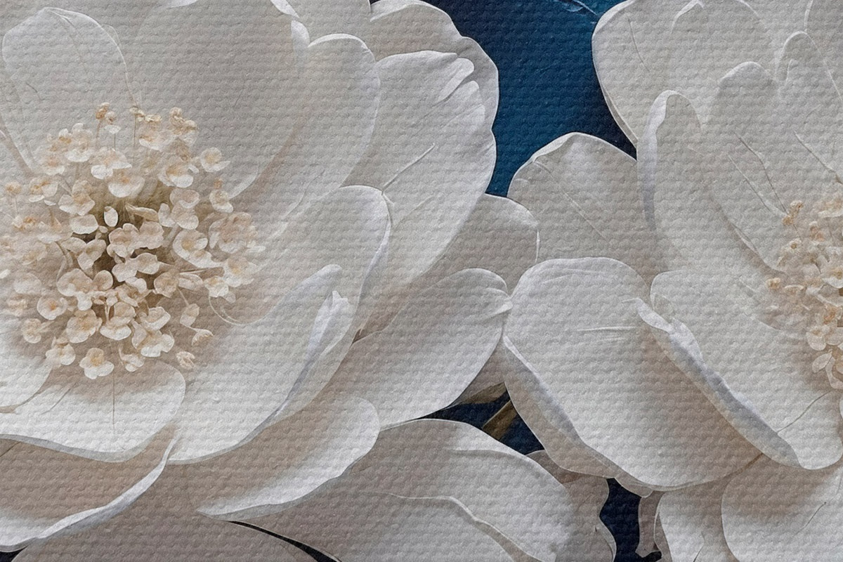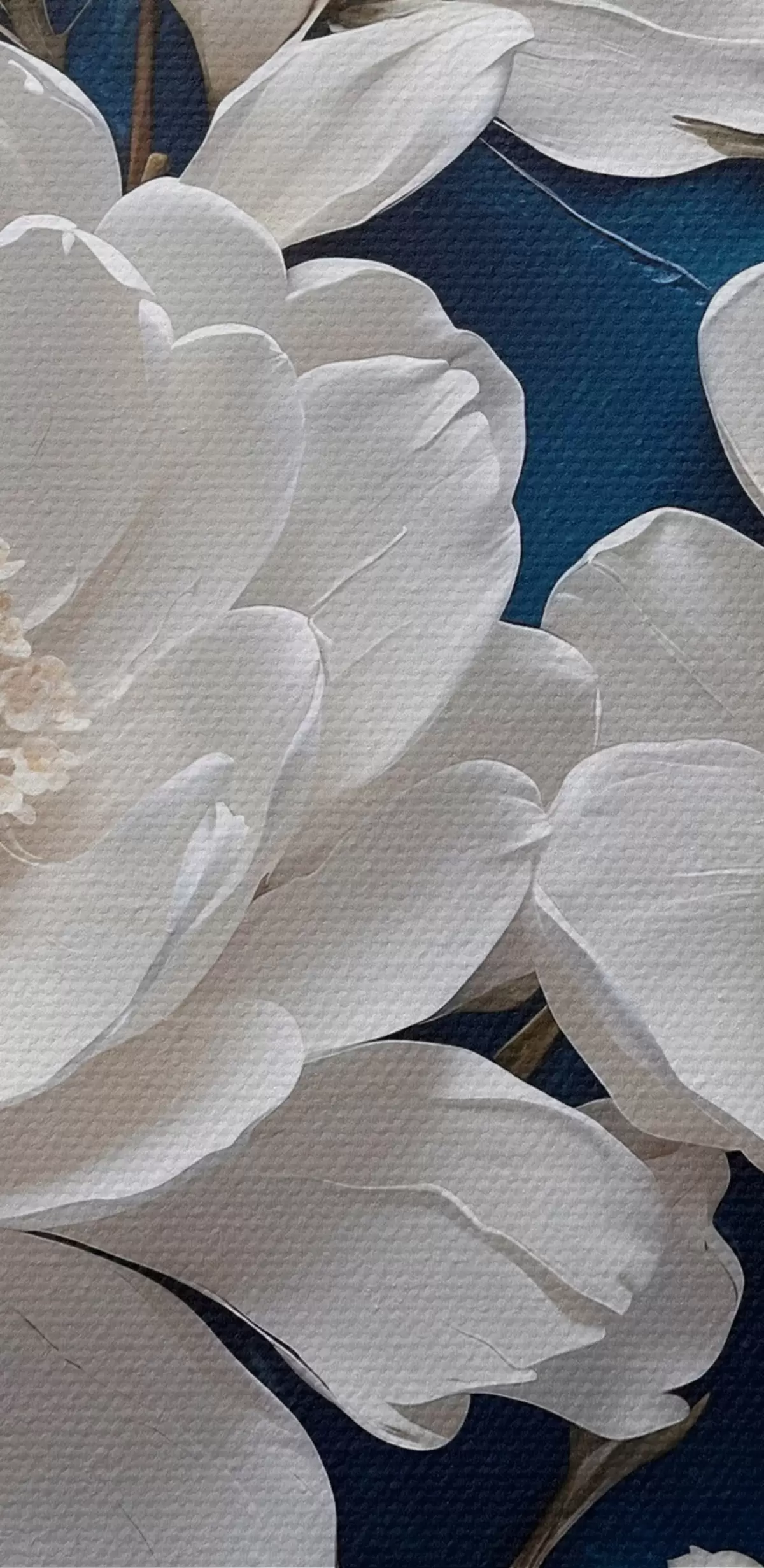 Immagine Fiori bianchi su sfondo blu dipinto ad olio Nr r44091