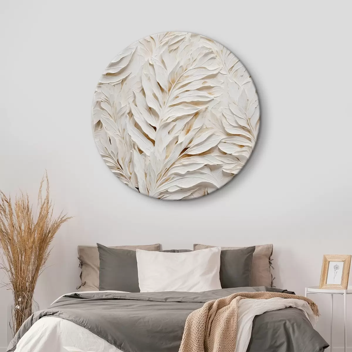 Quadri rotondi Foglie tropicali bianche r44093
