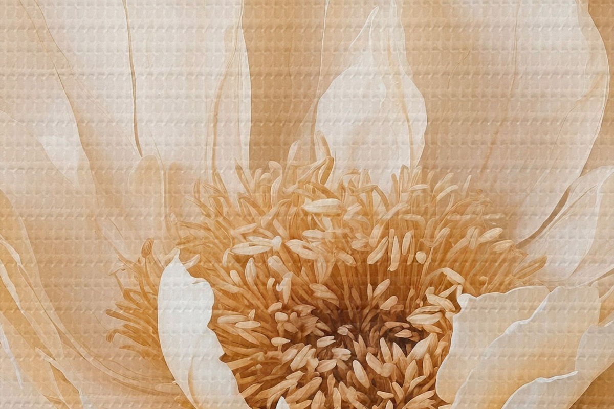 Quadri rotondi Fiore bianco su sfondo beige r44094