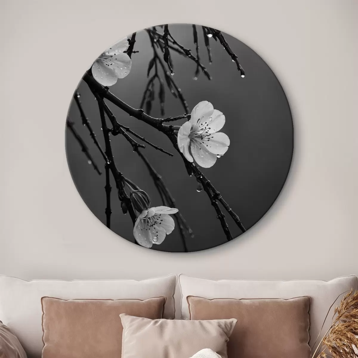 Quadri rotondi Fiori sui rami dopo la pioggia r44098