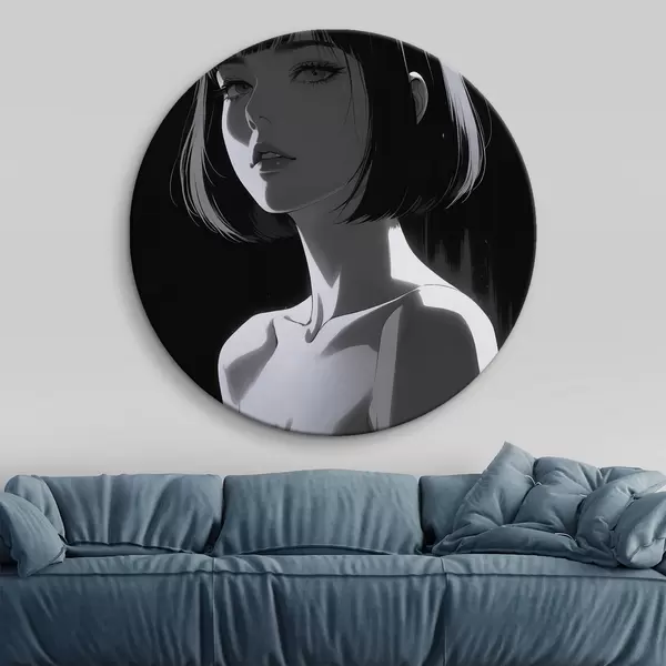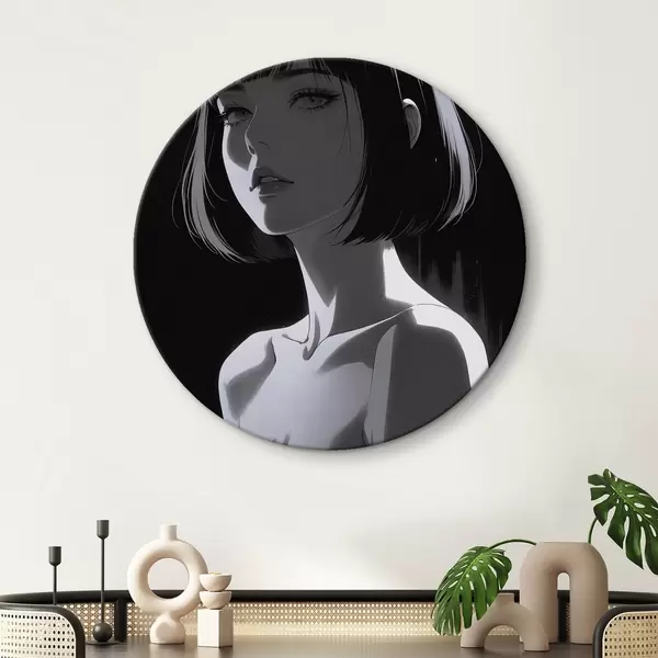 Quadri rotondi Poster con ragazza su sfondo nero r44103