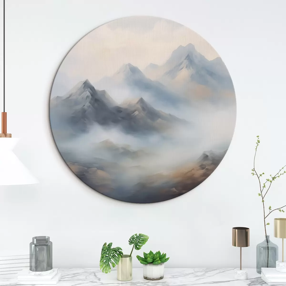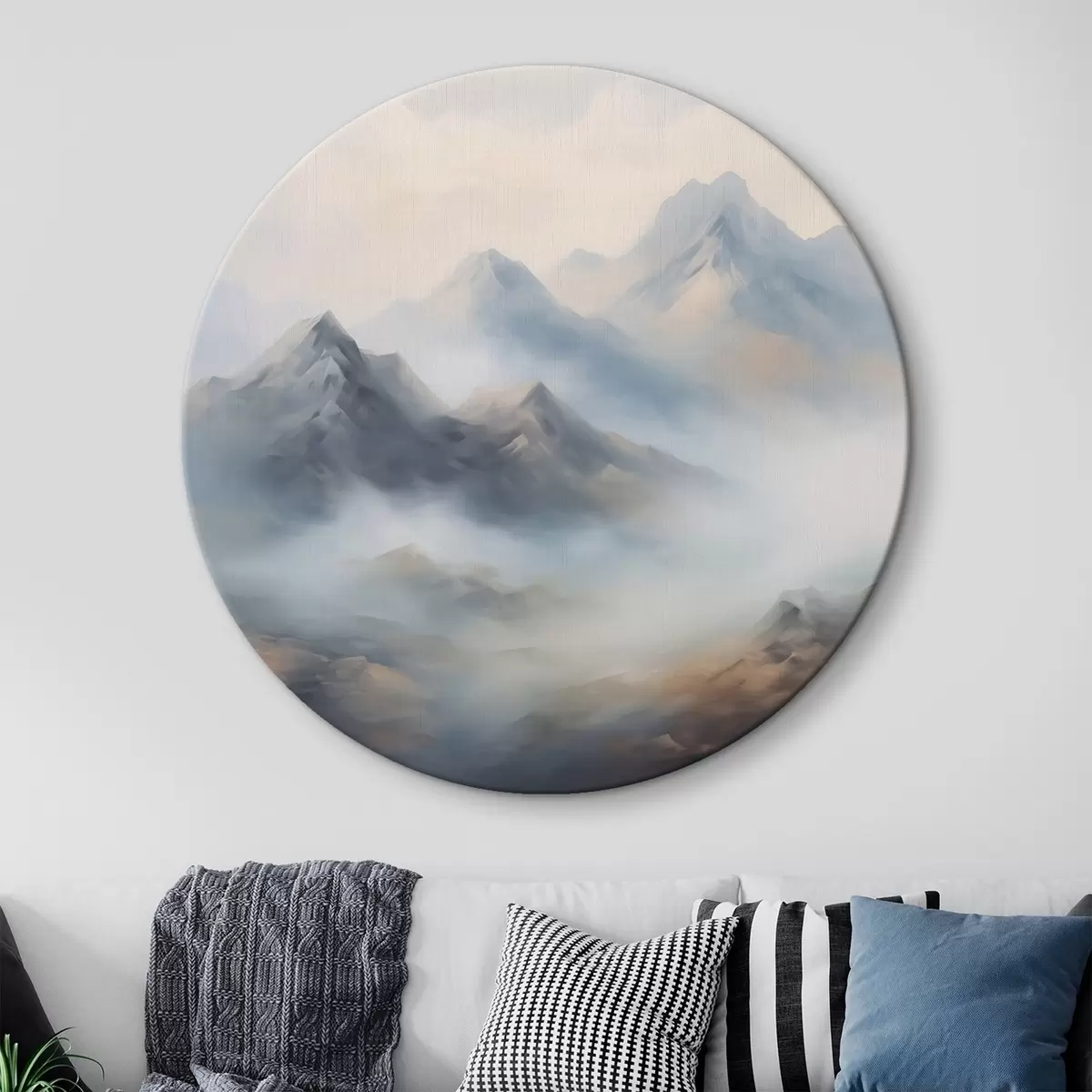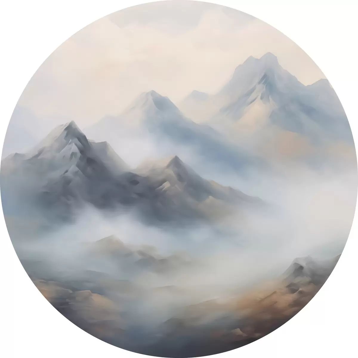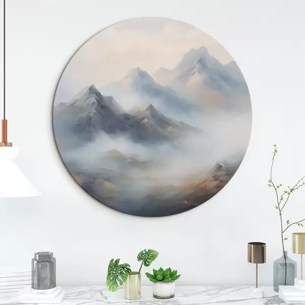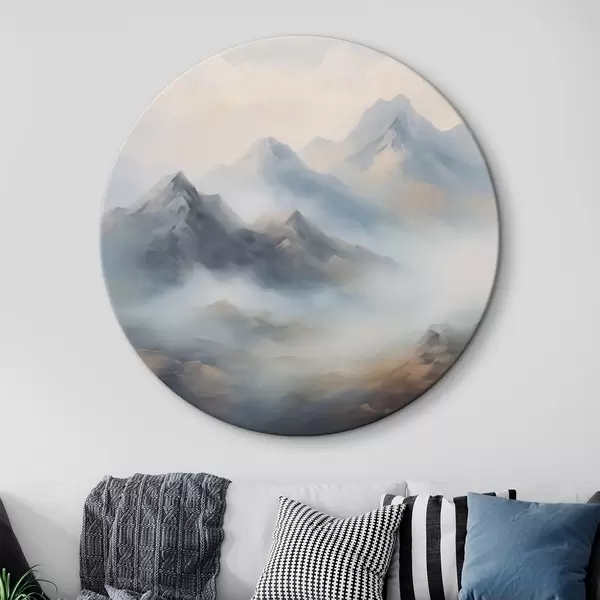 Quadri rotondi Montagne nella nebbia all'alba r44121