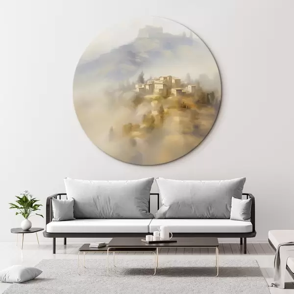 Quadri rotondi Villaggio sullo sfondo delle montagne r44127