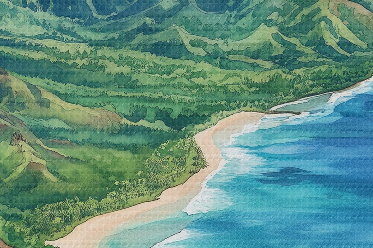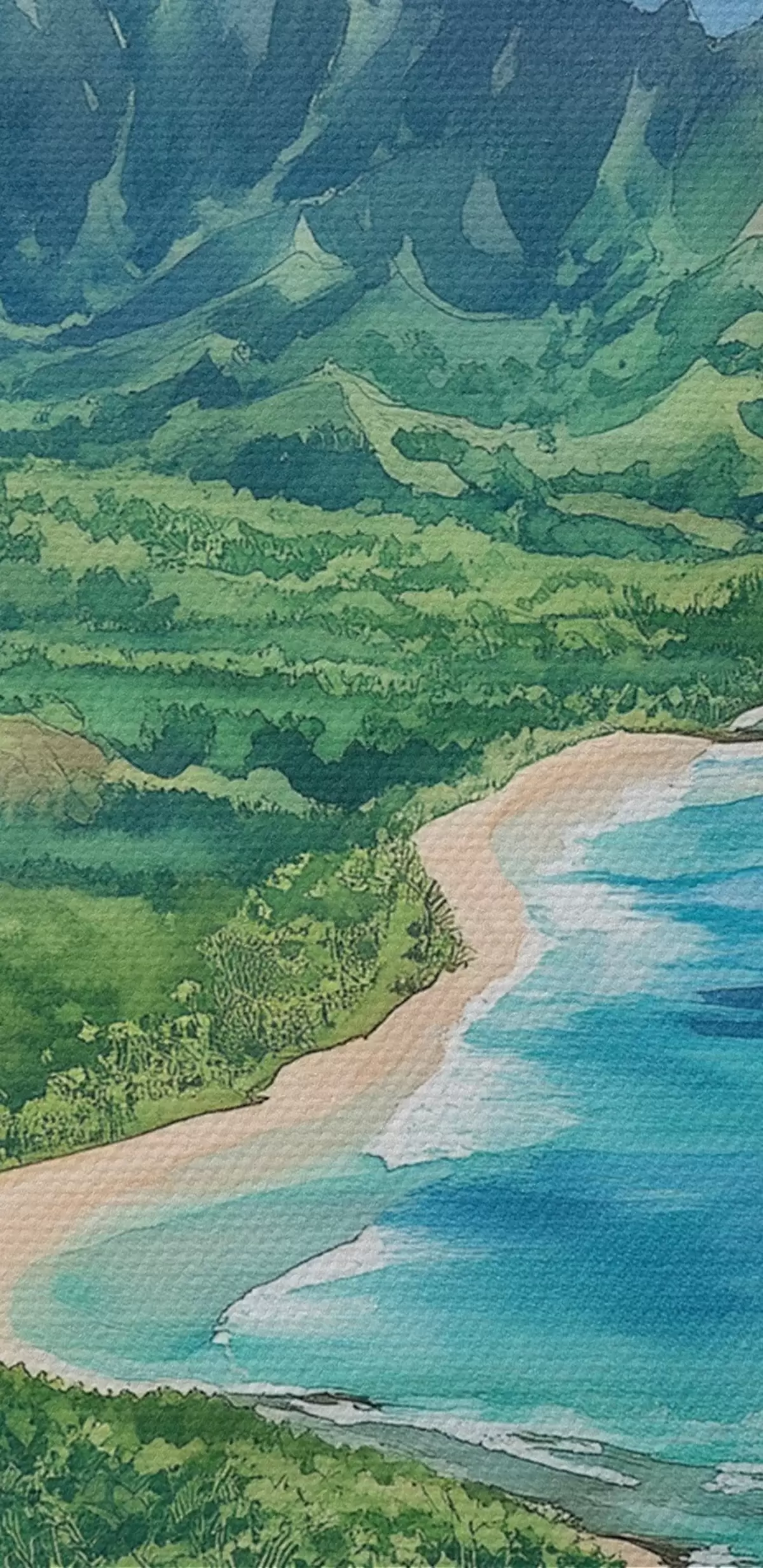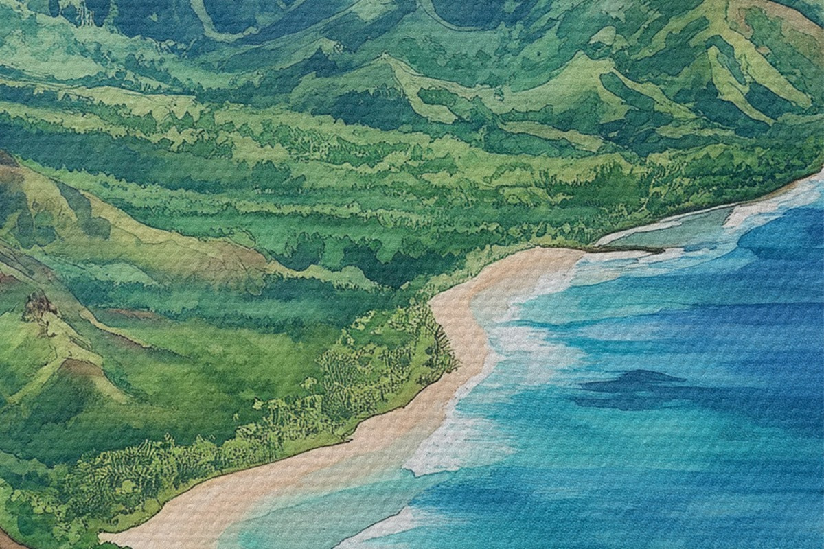Immagine Montagne verdi, Hawaii, oceano, tropicale, acquerello Nr r44143