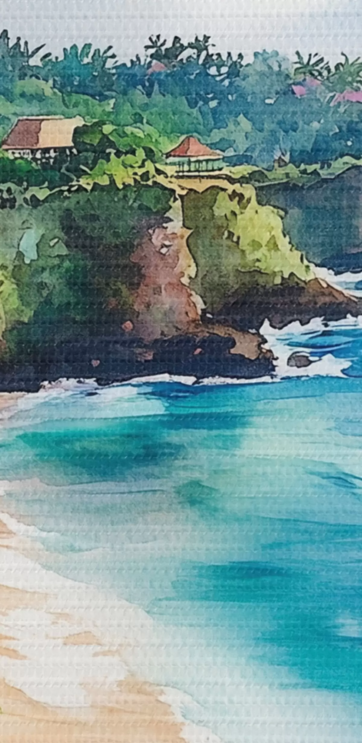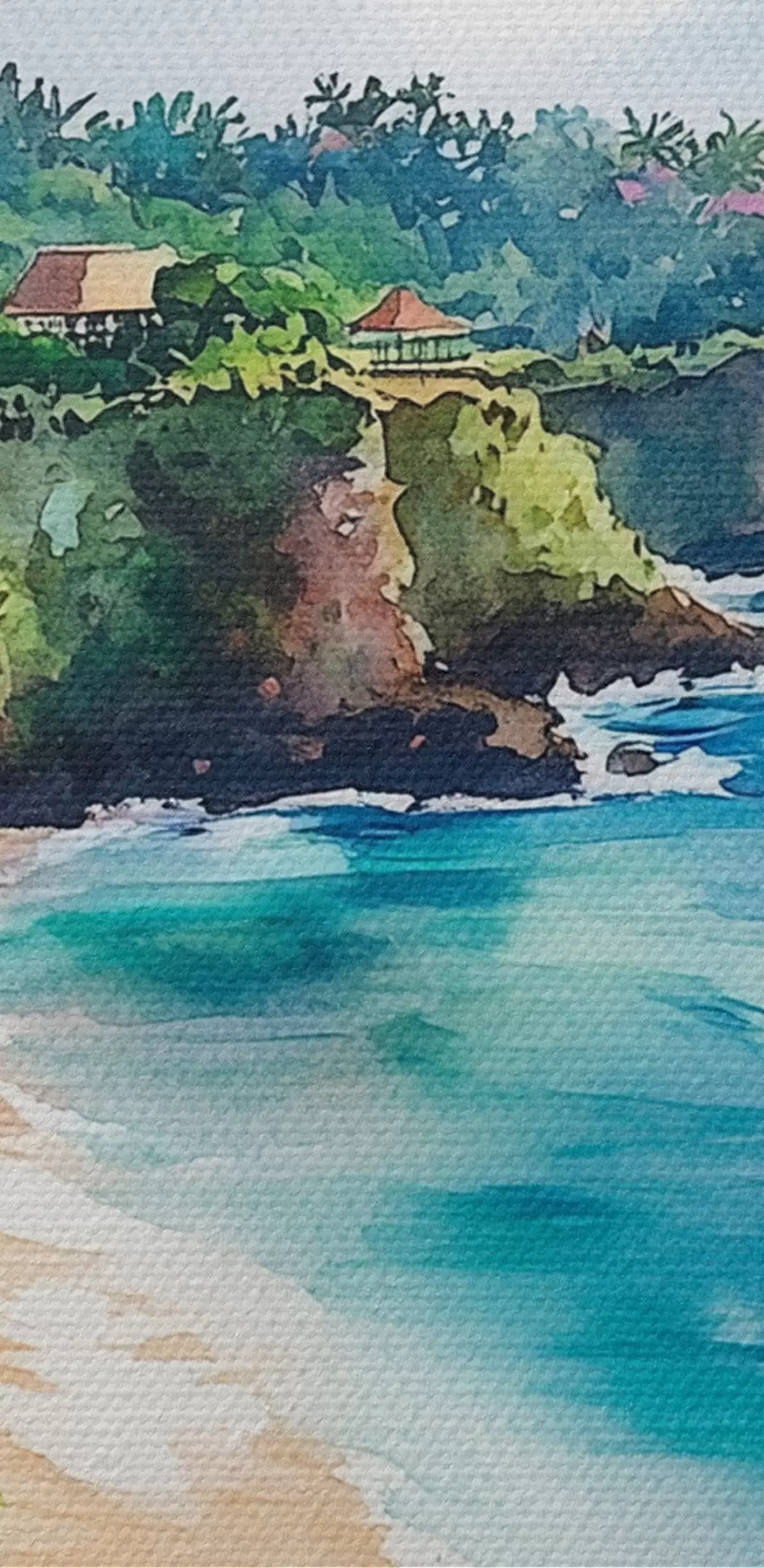 Immagine Spiaggia oceanica tropicale, palme, fiori, stile acquerello Nr r44145