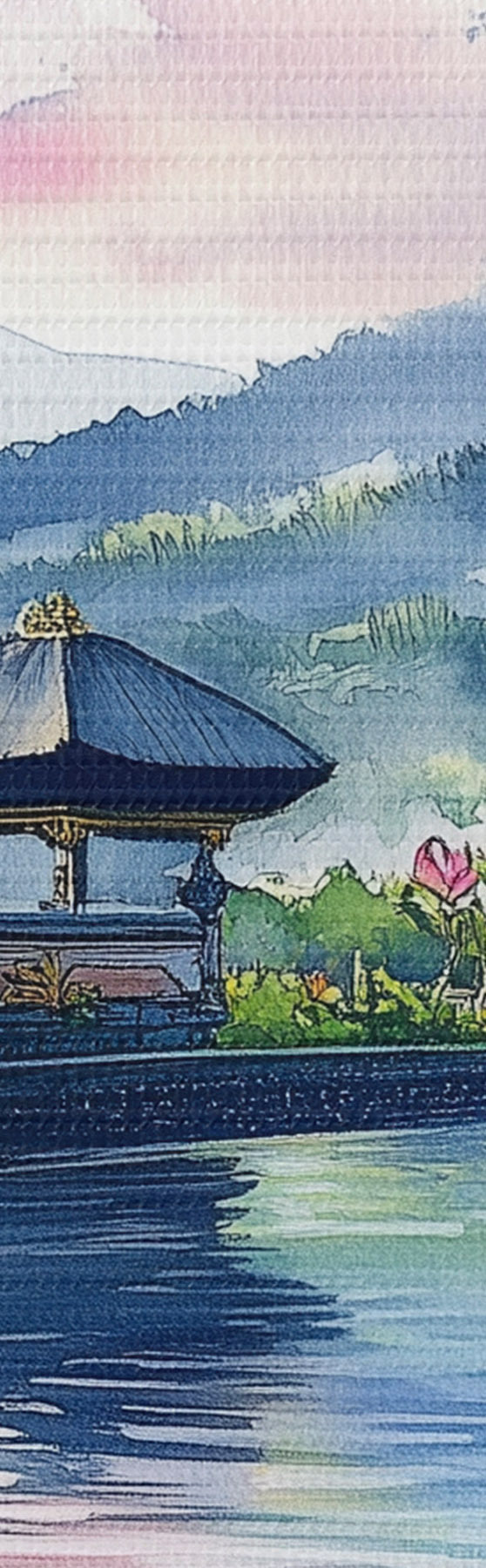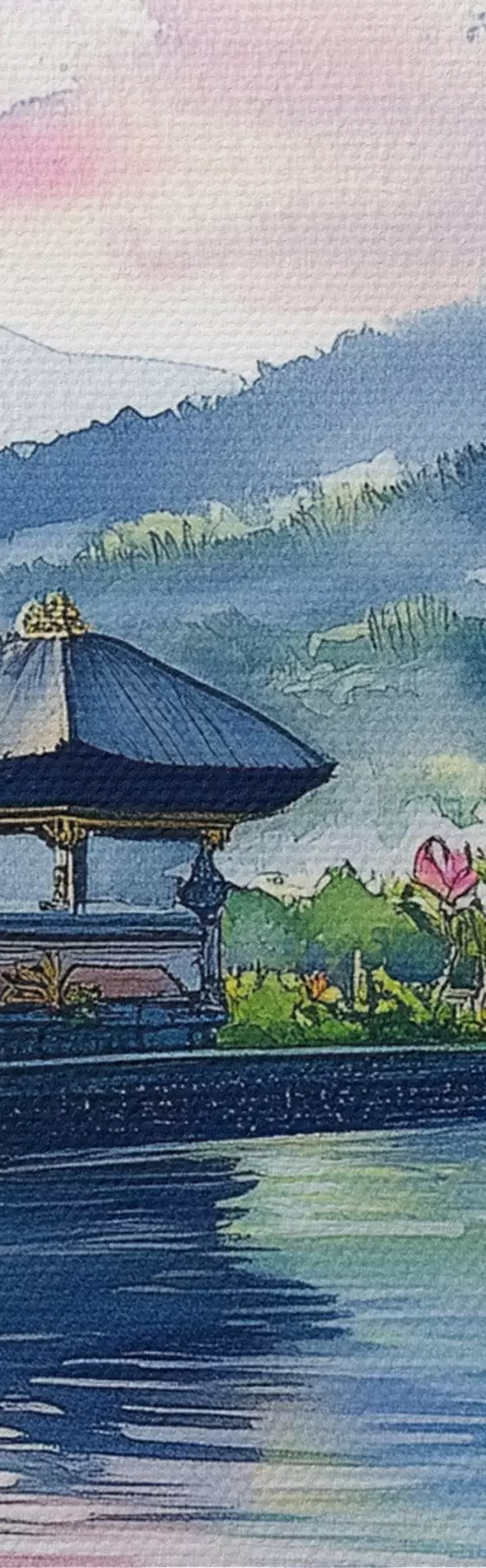 Immagine Isola indonesiana, tempio, buddismo, natura tropicale, stile acquerello Nr r44148