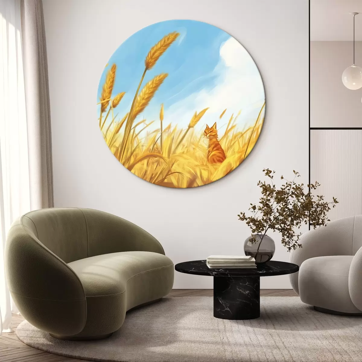 Quadri rotondi Gatto nel campo con spighe di grano r44211