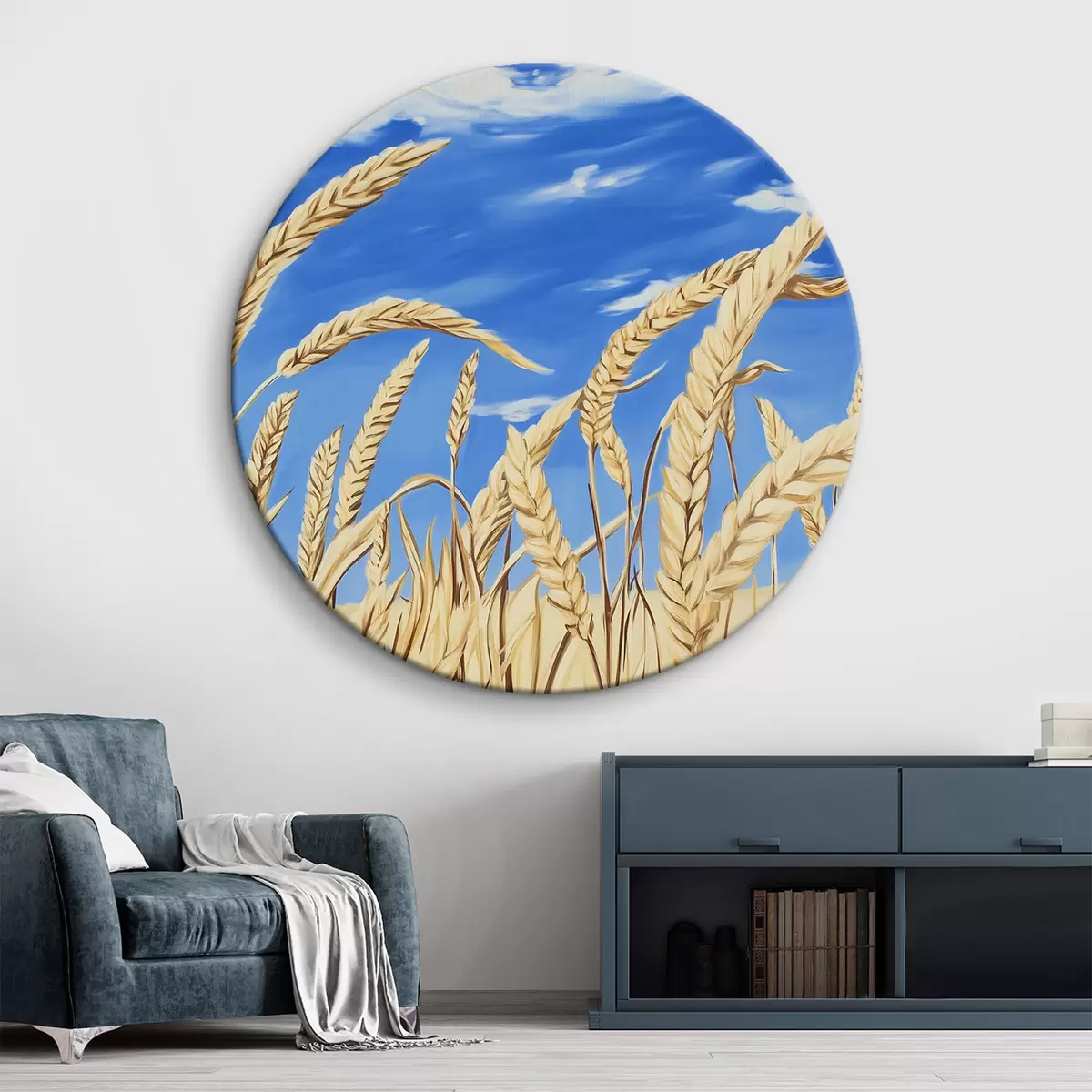 Quadri rotondi Orecchie di grano sotto il cielo blu r44212