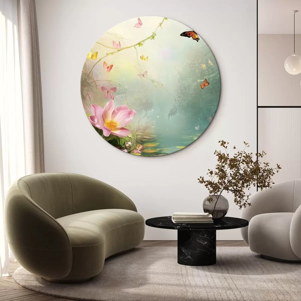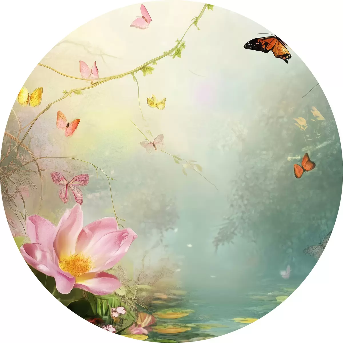 Quadri rotondi Lago nella foresta sotto gli alberi r44216