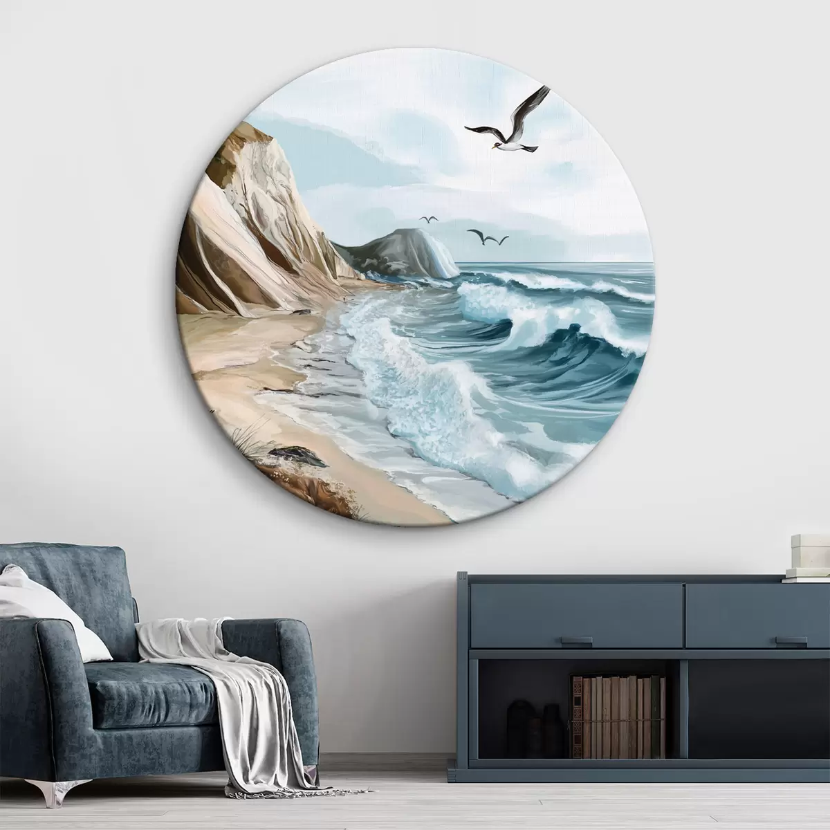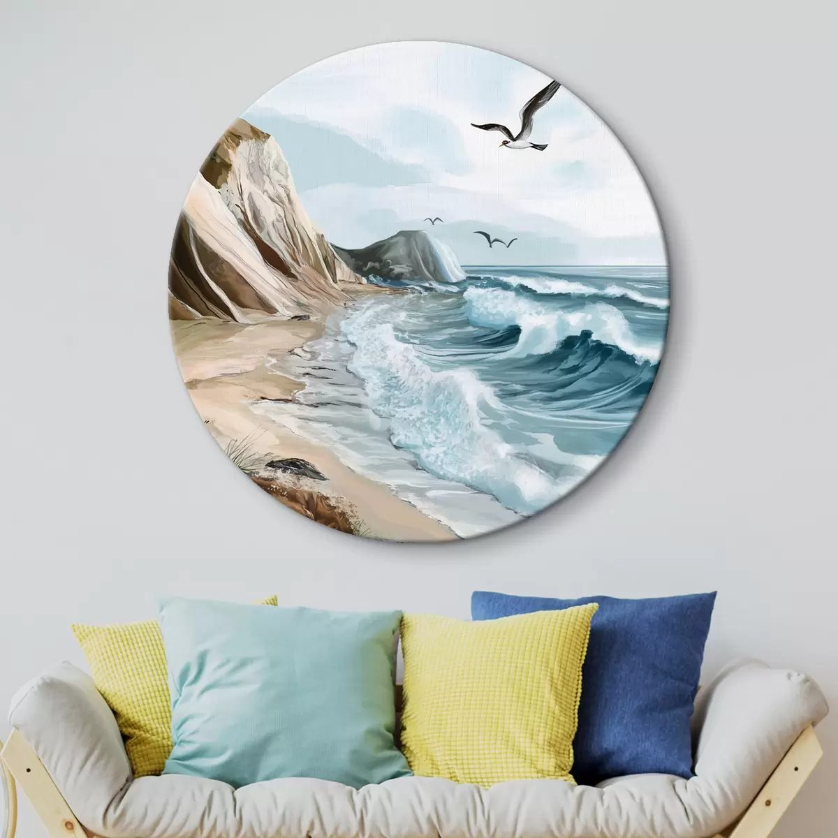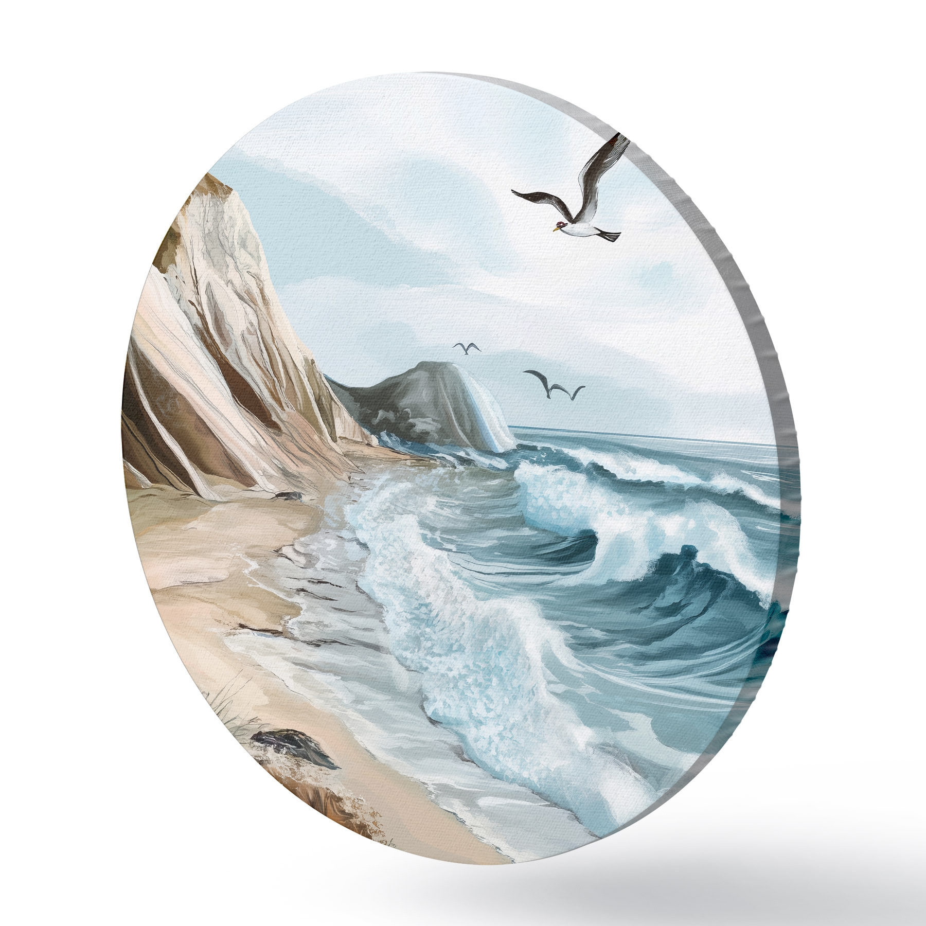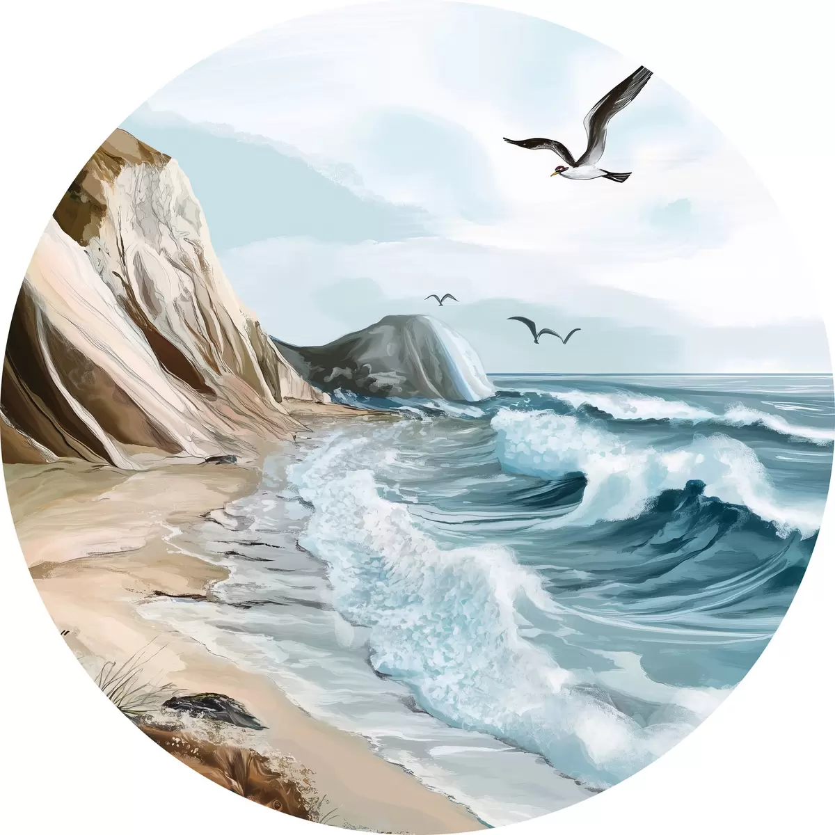 Quadri rotondi Spiaggia sabbiosa e uccelli r44222