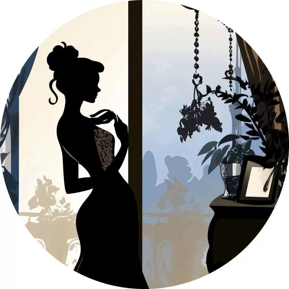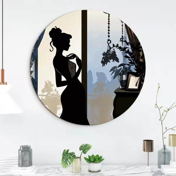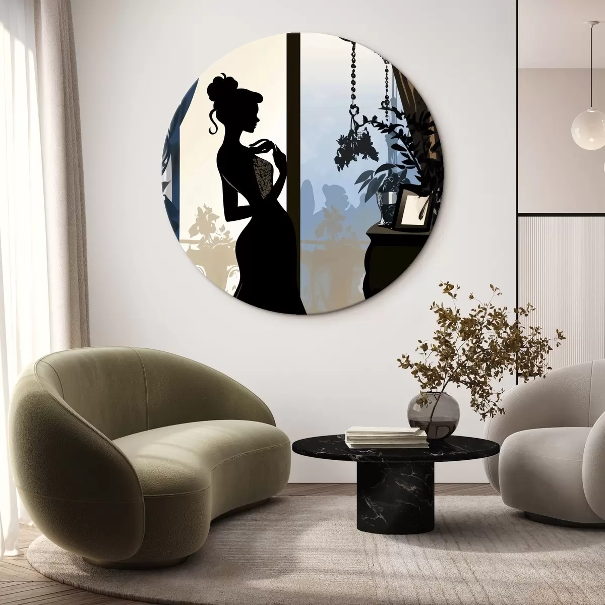 Quadri rotondi Silhouette di una ragazza con un vestito r44227