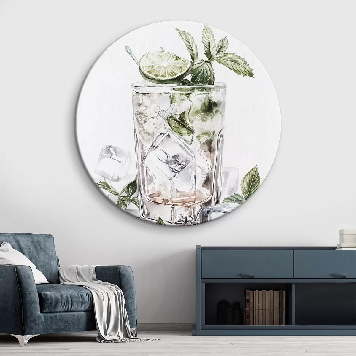 Quadri rotondi Cocktail Mojito, bevande in stile acquerello, menta r44302