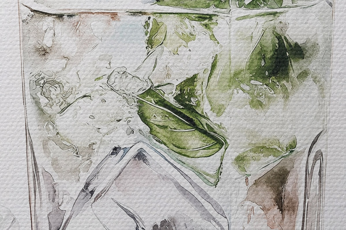 Immagine Cocktail Mojito, bevande in stile acquerello, menta Nr r44302