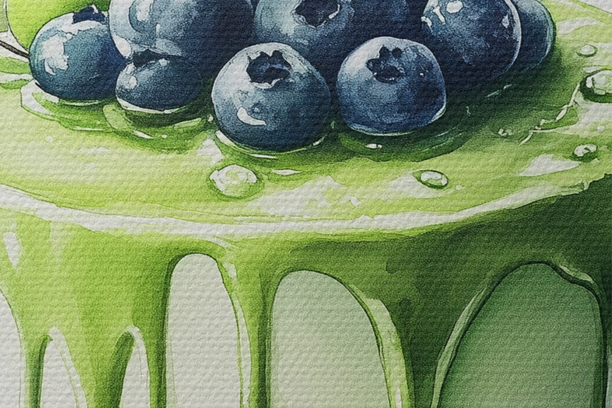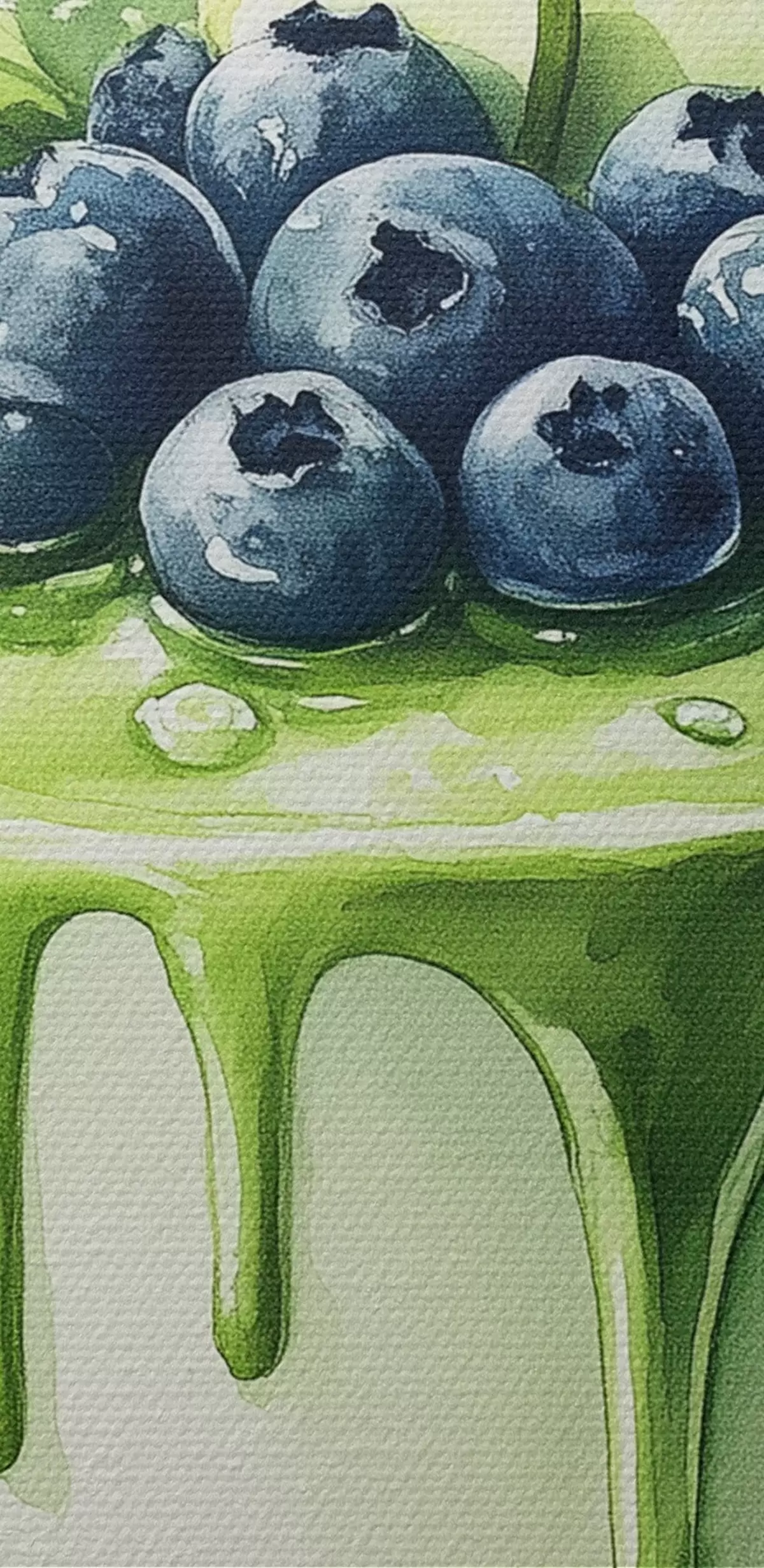 Immagine Torta Matcha con mirtilli e mele, stile acquerello Nr r44304