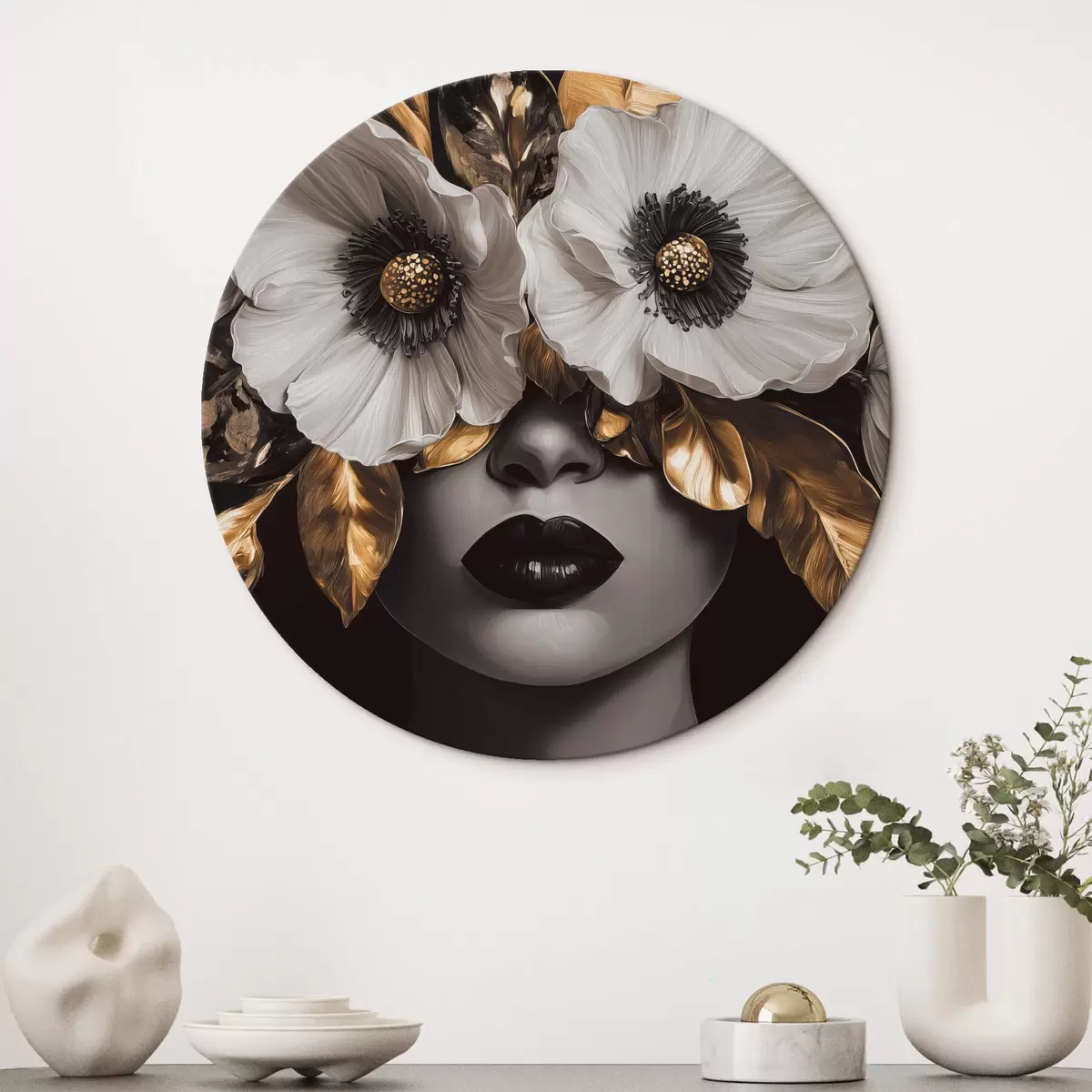 Quadri rotondi Ritratto semi-astratto di donna con fiori r44365
