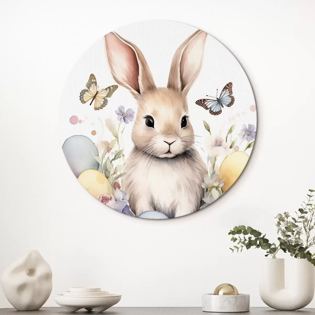 Quadri rotondi Coniglietto carino in stile acquerello in fiori con farfalle r44388