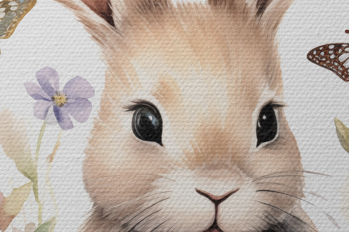Immagine Coniglietto carino in stile acquerello in fiori con farfalle Nr r44388