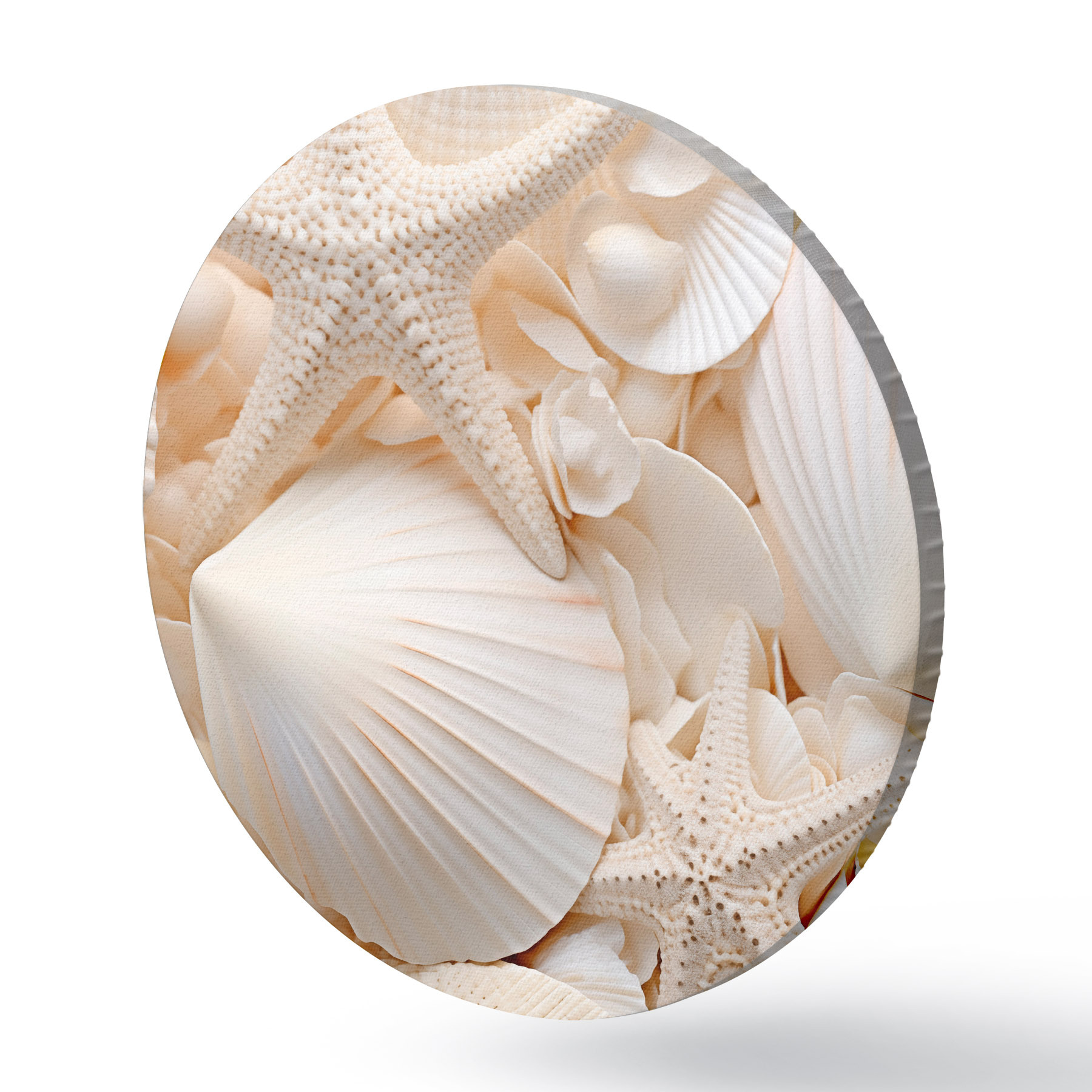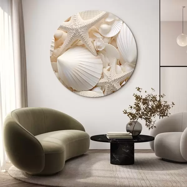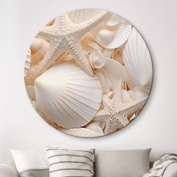 Quadri rotondi Conchiglie e stelle marine bianche decorative, che creano una composizione monocromatica e strutturata r44392