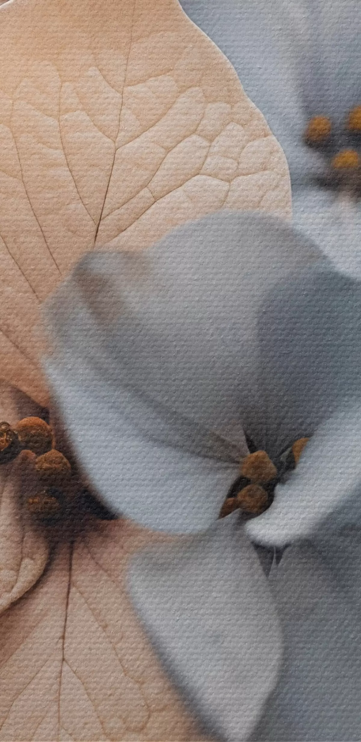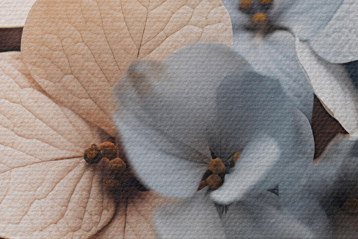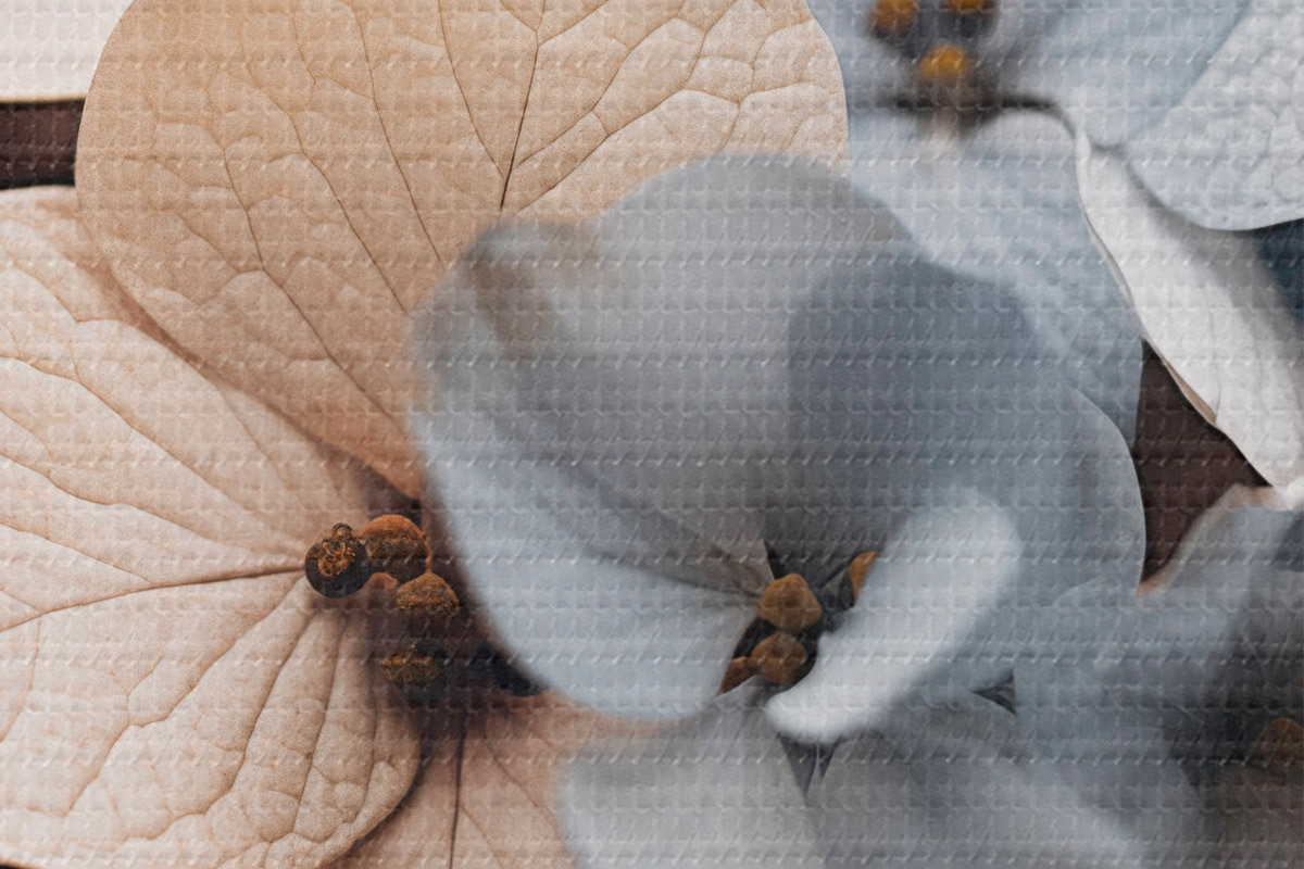 Immagine Fiori di ortensia, petali azzurri e beige, con texture dettagliate, composizione floreale elegante Nr r44394