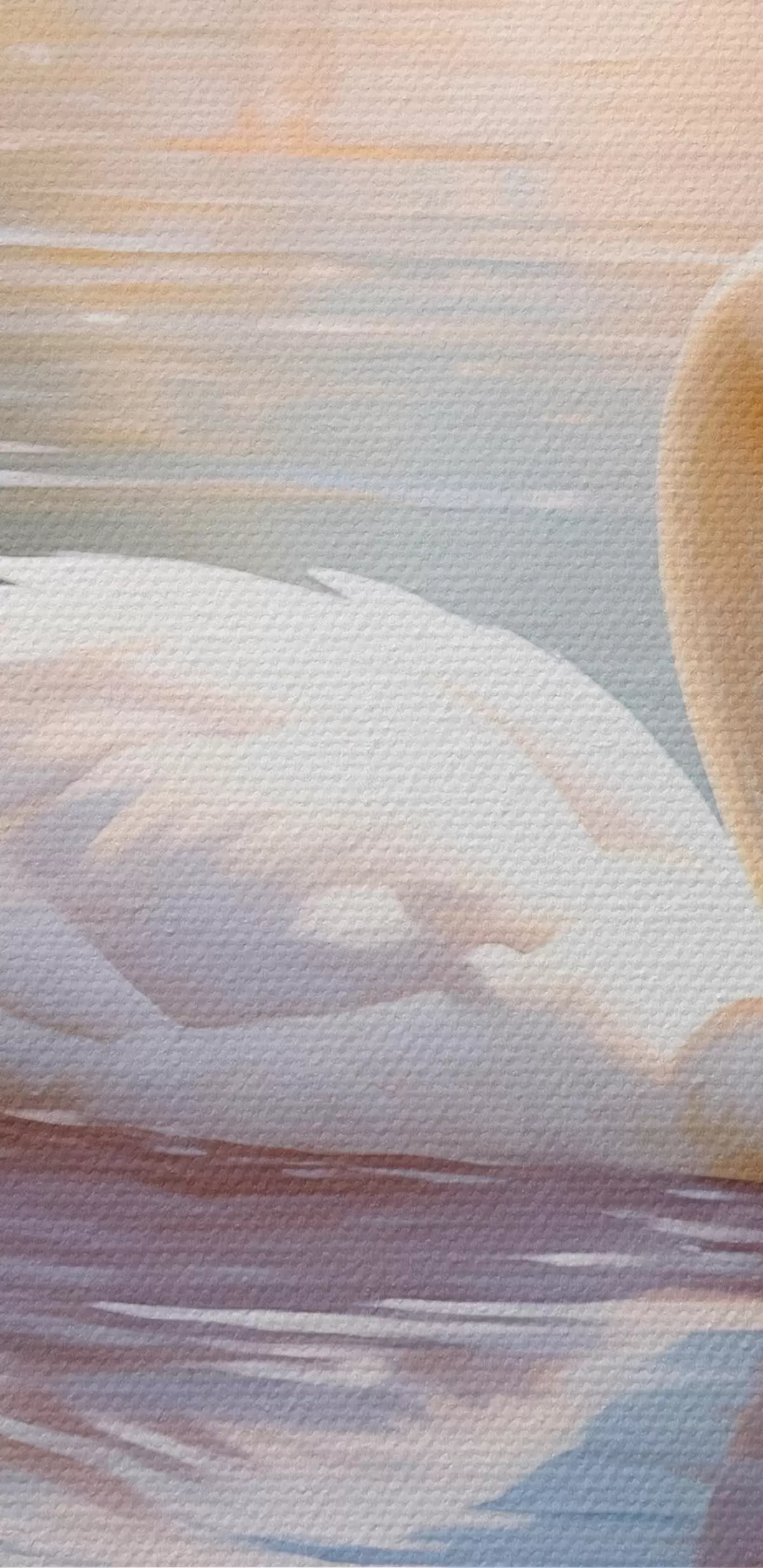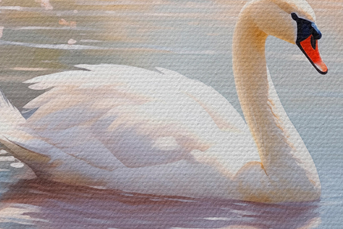 Immagine Un cigno bianco che nuota in un lago con alberi di ciliegio in fiore, colori pastello Nr r44396