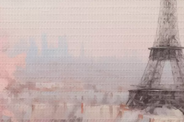 Immagine Torre Eiffel a Parigi con alberi di ciliegio in fiore in primavera, colori pastello tenui Nr r44398