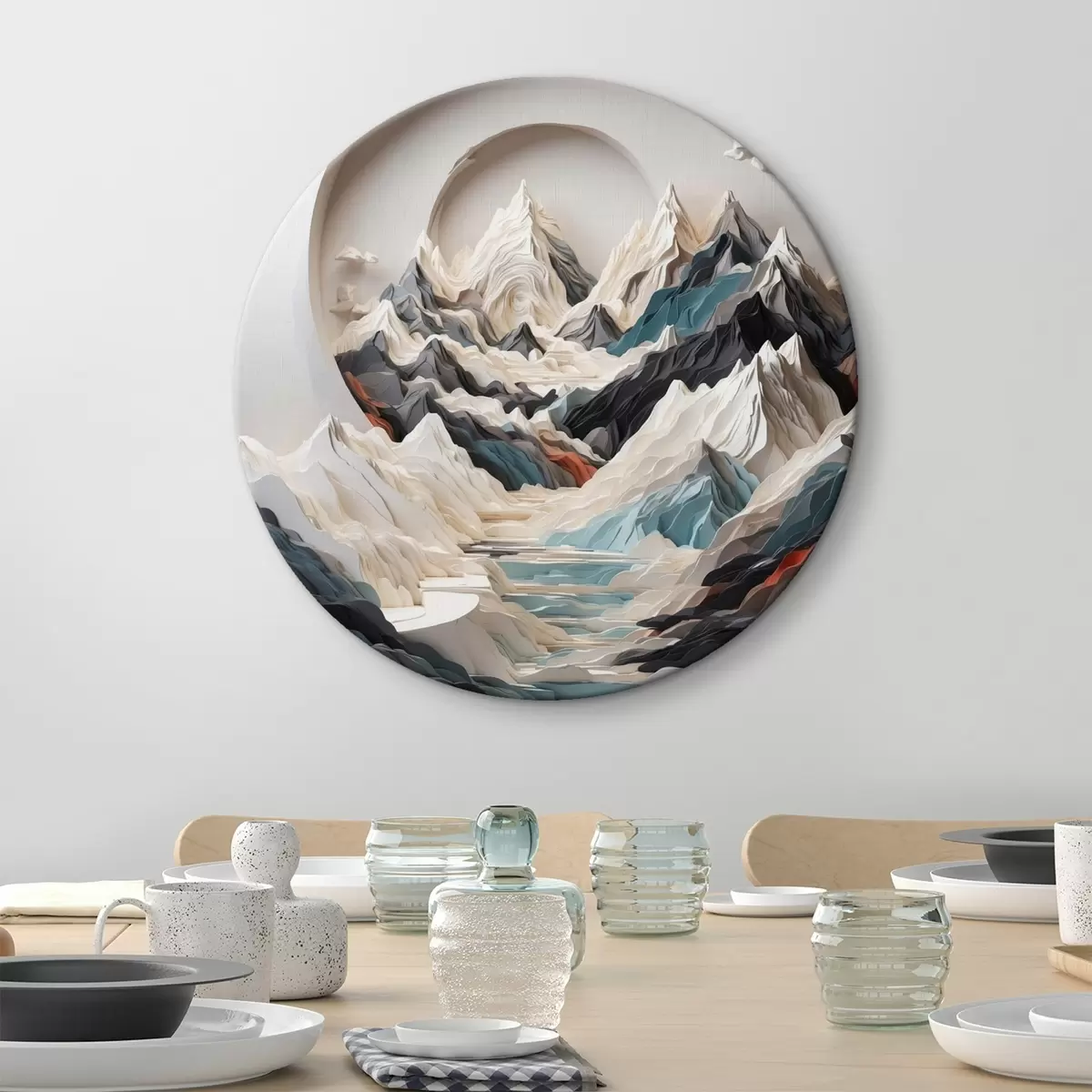 Quadri rotondi Pittura astratta di un'area montuosa r44427
