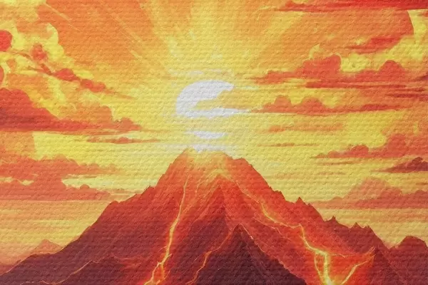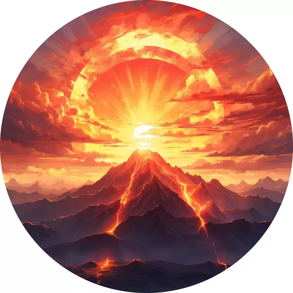 Quadri rotondi Tramonto vicino al vulcano r44432