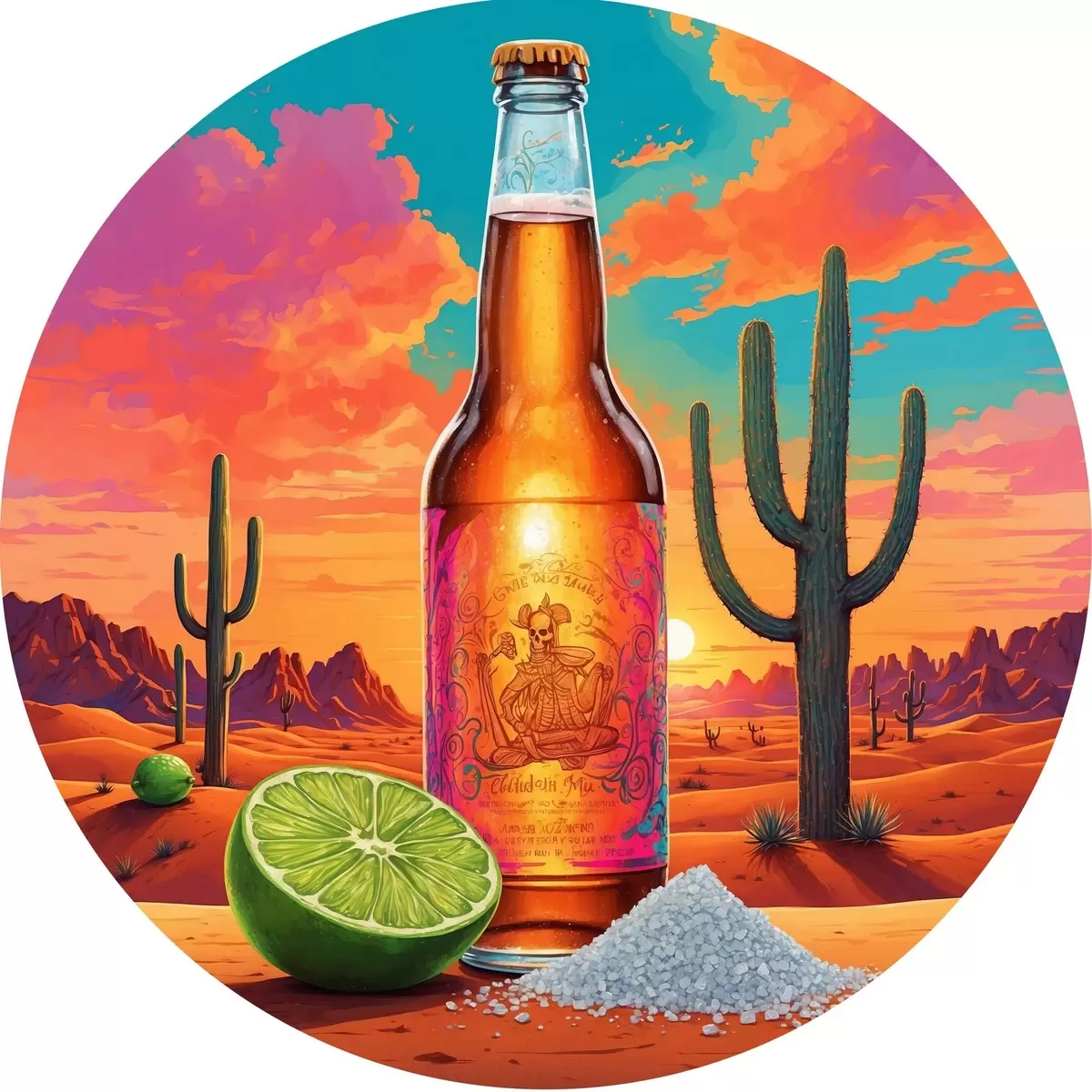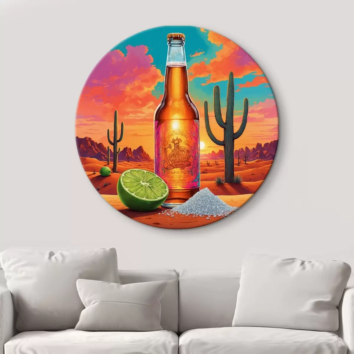 Quadri rotondi Birra e calce sullo sfondo delle lande desolate americane r44438