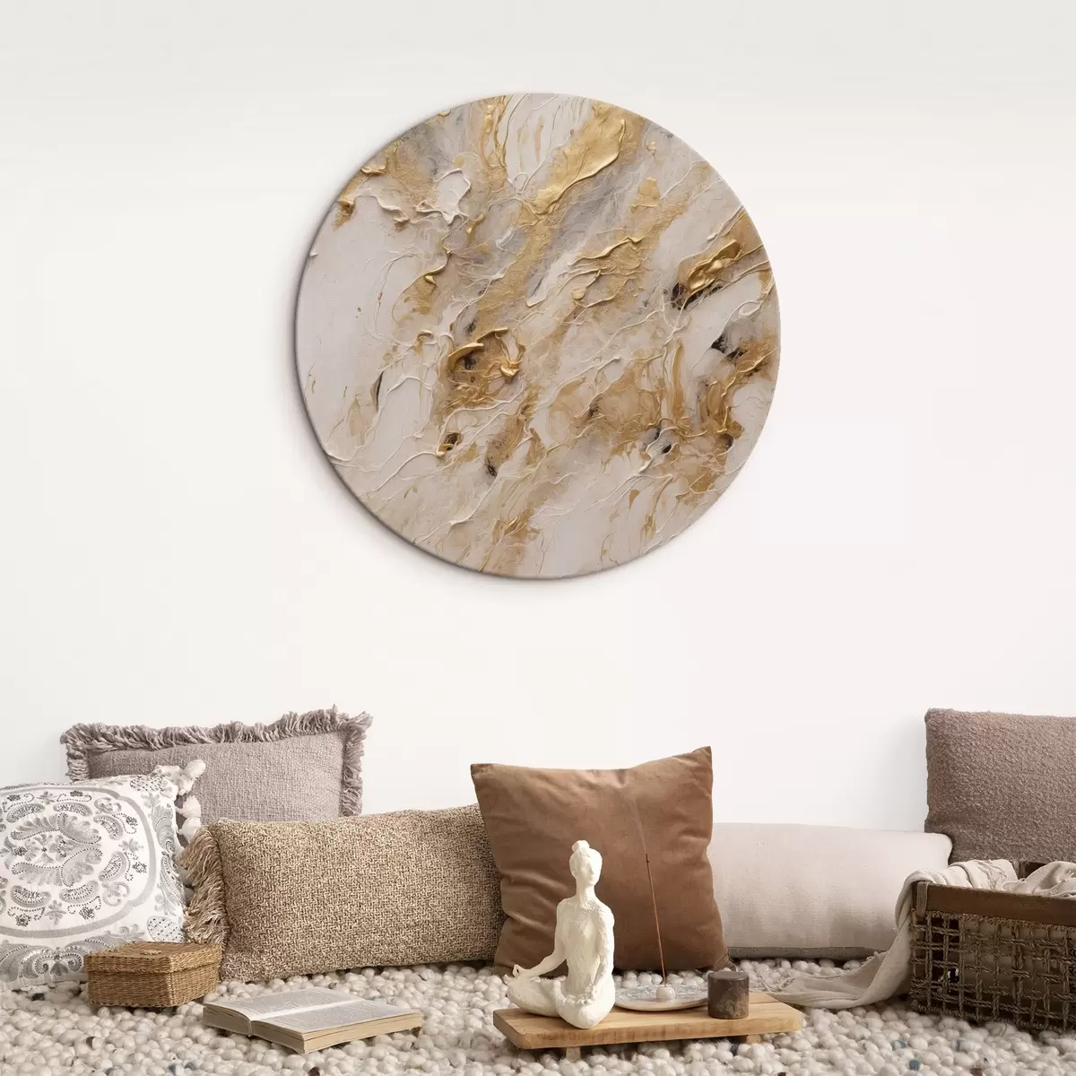 Quadri rotondi Percorso astratto giallo e bianco in stile pittura acrilica Fiore rosso su sfondo bianco-rosso pittura ad olio bianca r44439