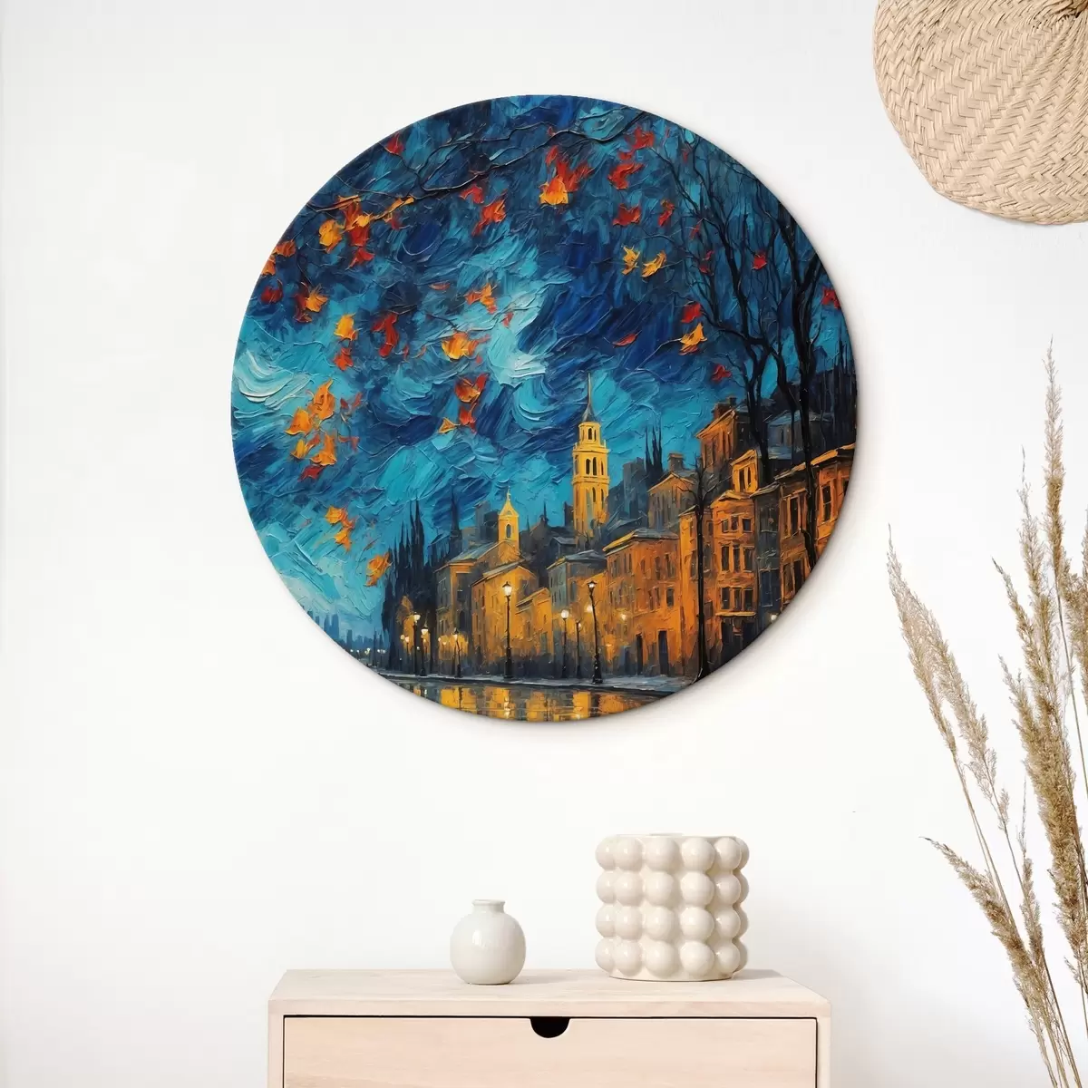 Quadri rotondi Notte a Londra in stile pittura acrilica r44453