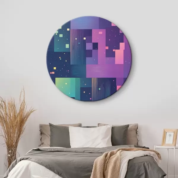 Quadri rotondi Pittura astratta con figure rettangolari multicolori r44457