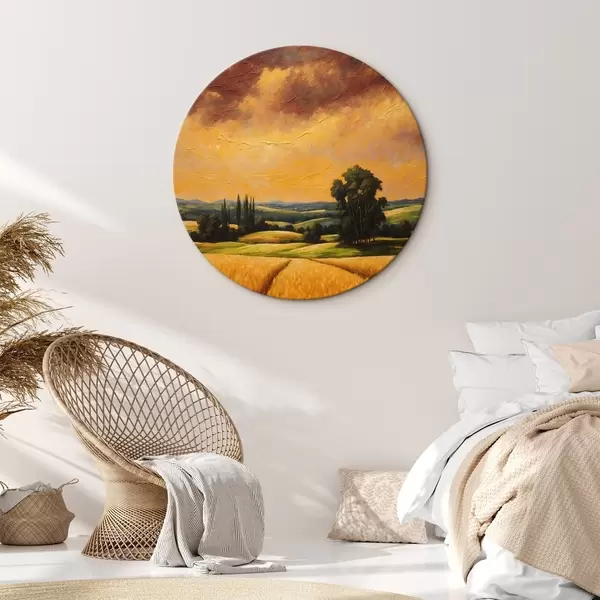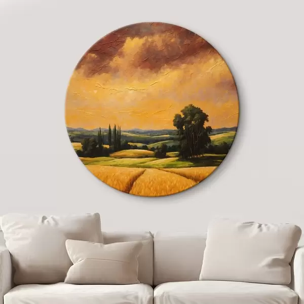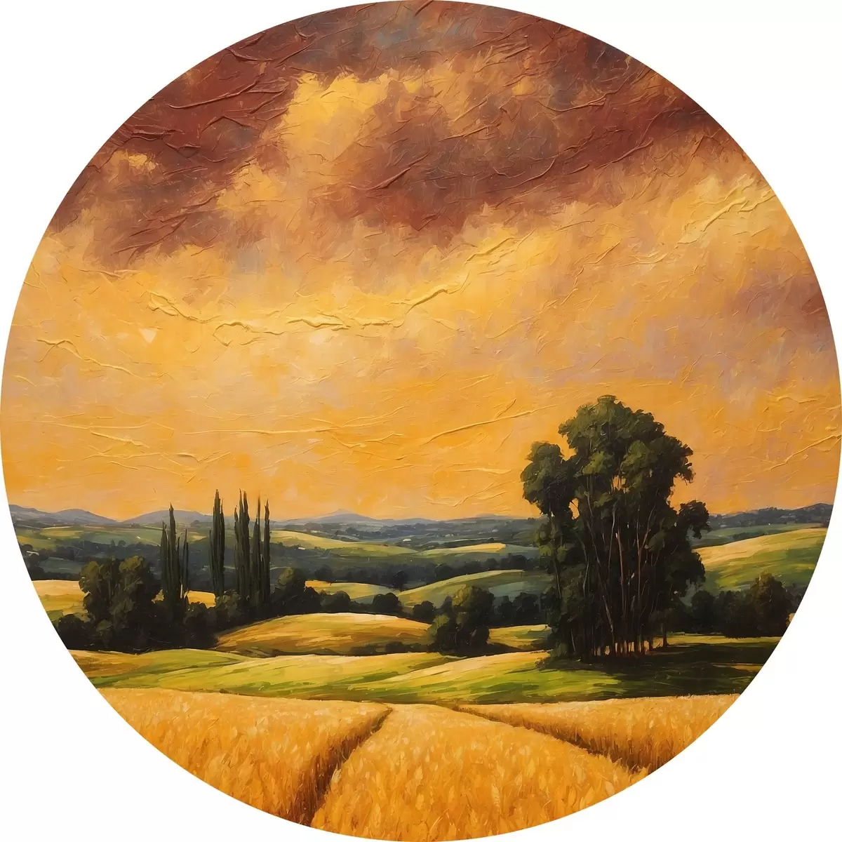 Quadri rotondi Campo di grano in stile pittura acrilica r44464